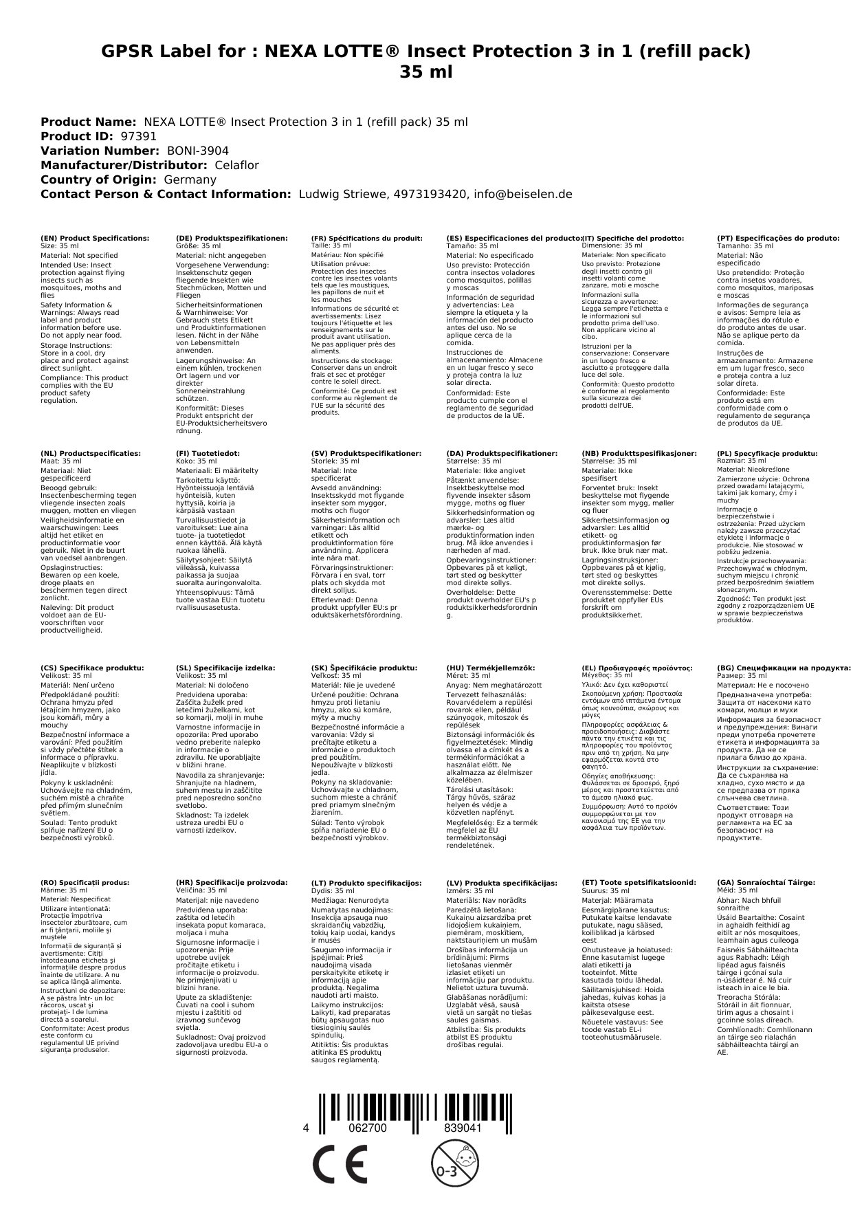 Breiseán Cosanta Feithidí, Athlíonadh Breiseán Mosquito, 35ml