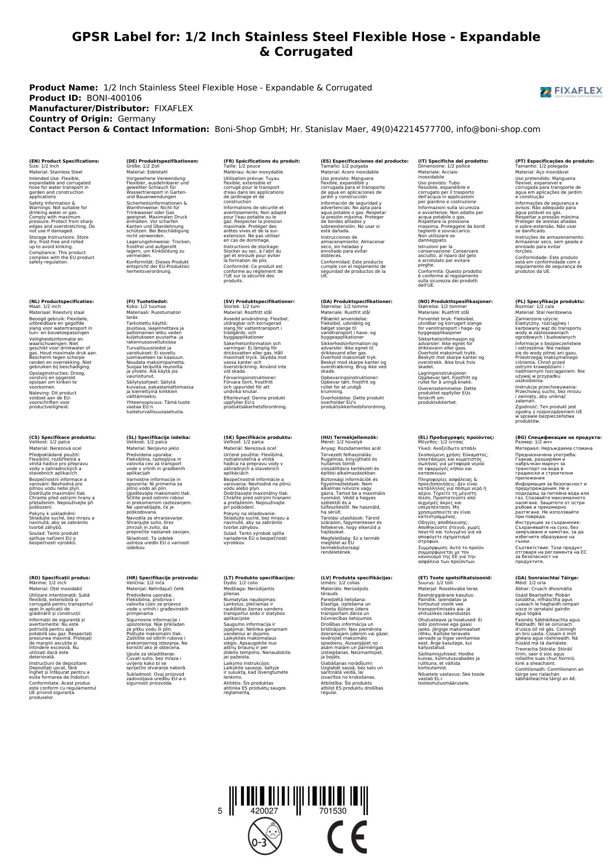 Cuireann ár bpíobán cruach dhosmálta feidhmíocht agus solúbthacht iontaofa ar fáil duit le haghaidh feidhmeanna éagsúla. Le nasc DN13 (1/2 orlach) agus an tógáil cruach dhosmálta láidir, tá sé oiriúnach chun críocha sláintíochta, téimh agus tionsclaíocha. Ceadaíonn an dearadh sínte suiteáil agus coigeartú éasca. Cén fáth a bhfuil sé seo tábhachtach duit: Faigheann tú píobán buan agus ilúsáideach a oireann go solúbtha do do riachtanais.