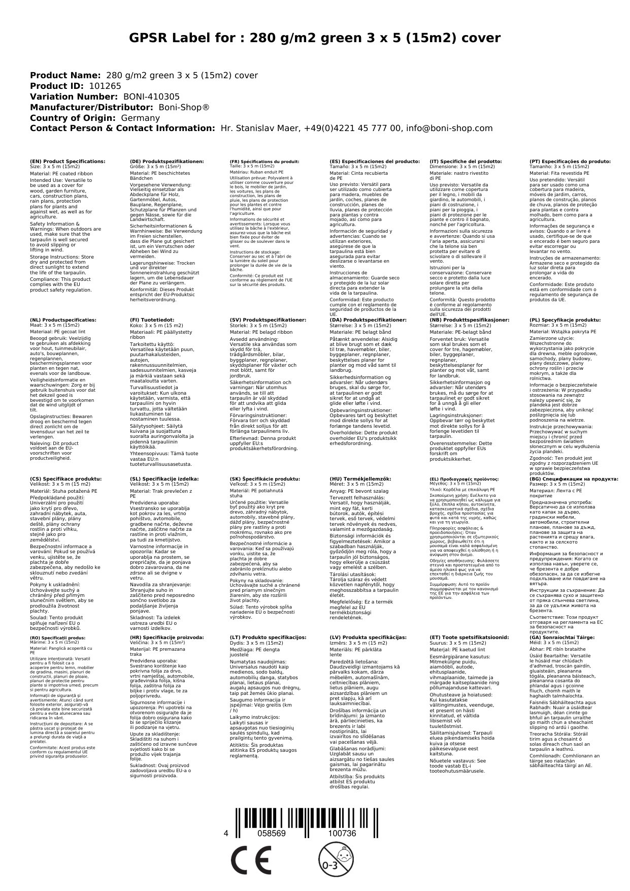 Cuir ceist chun níos mó a fhoghlaim faoin táirgeClúdach uiscedhíonach, tarpaulin glas 280 g/m², 3x5m (15m²), clúdach gairdín, reißfest, uiscedhíonach