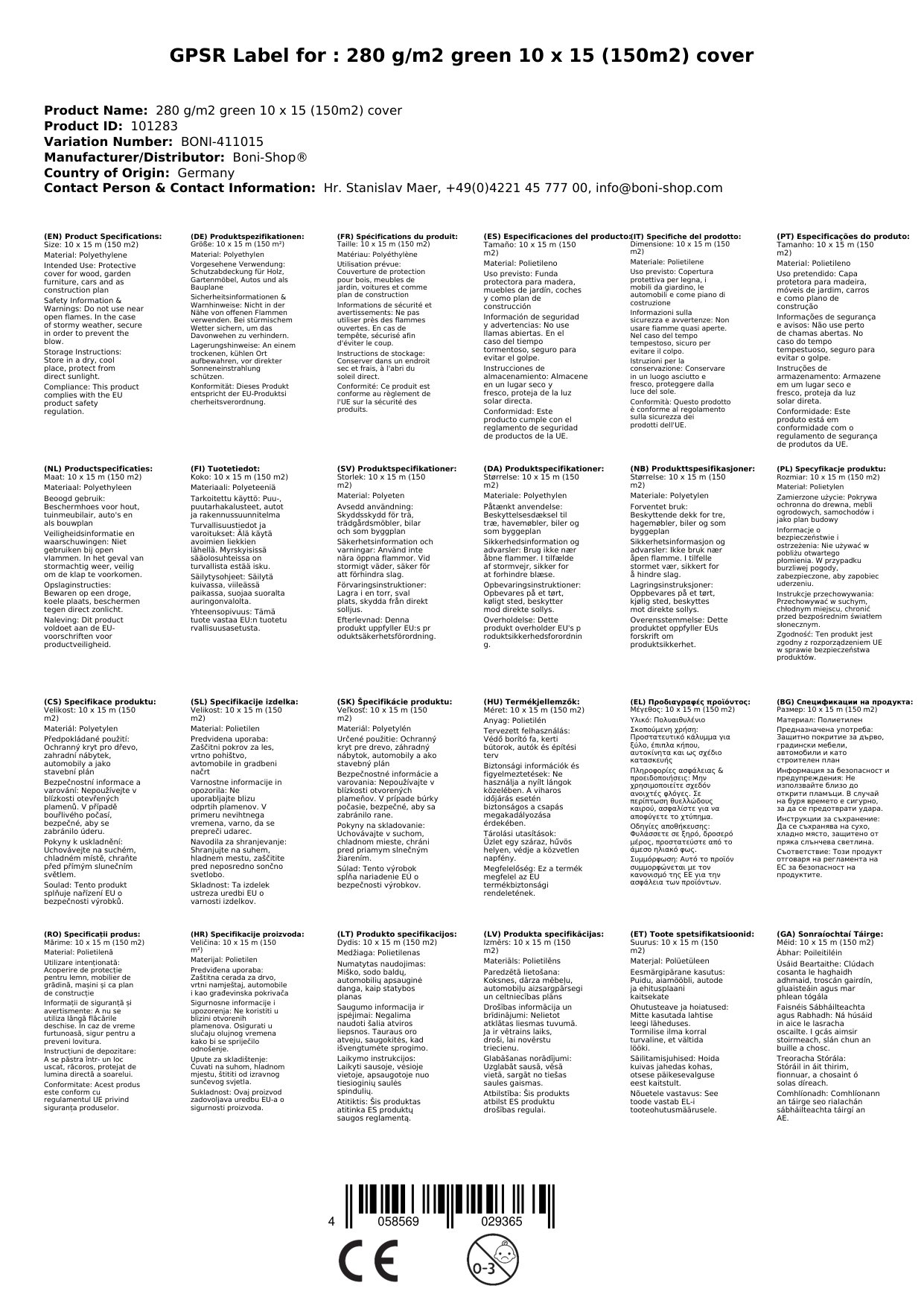 Cuir ceist chun níos mó a fhoghlaim faoin táirgeTarpaulin glas, 280 g/m², 10 x 15 m (150m²), uiscedhíonach, reißfest, clúdach ginearálta