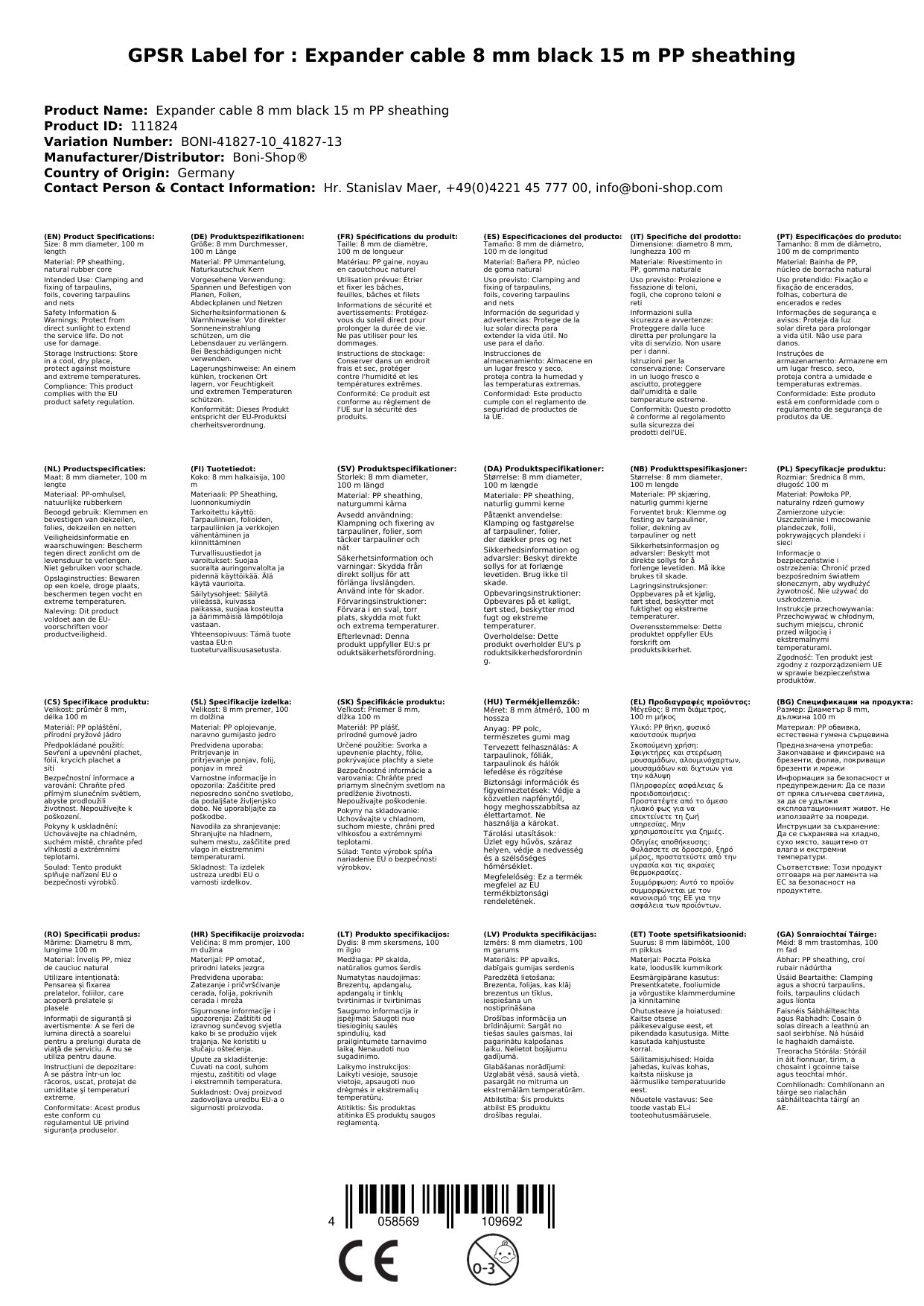 Corda Leaisteach Dubh, 8mm x 15m, UV-Resistant do Phlainéad & Líonta