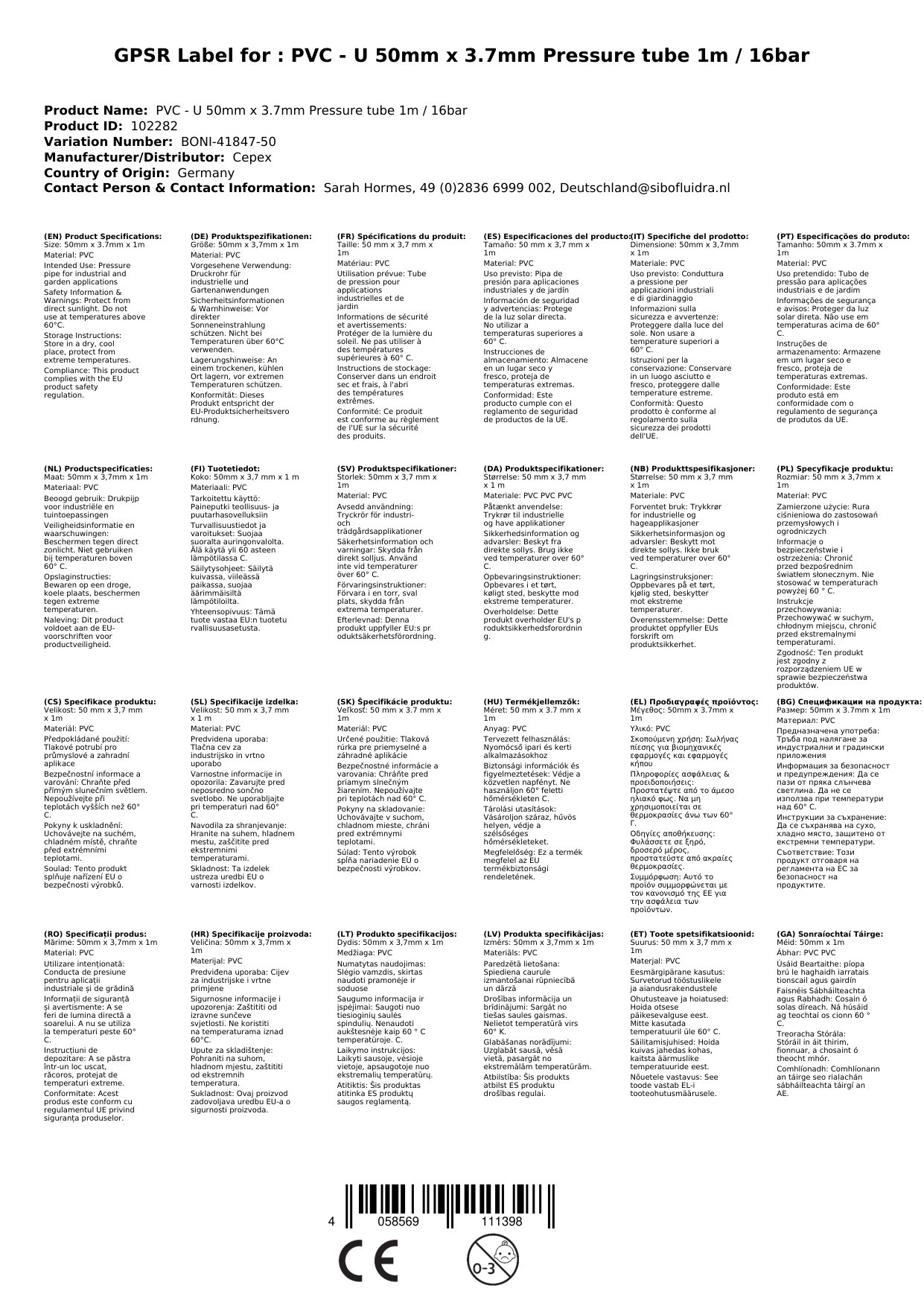 Cinntíonn an píopa brú seo nasc láidir agus iontaofa d'fheidhmchláir éilitheacha. Le trastomhas 50mm agus rátáil brú PN16, seasann sé fiú ualaí arda. Mar gheall ar a fhriotaíocht cheimiceach, tá sé an-versatile. Is féidir leat brath ar réiteach fada buan agus sábháilte.