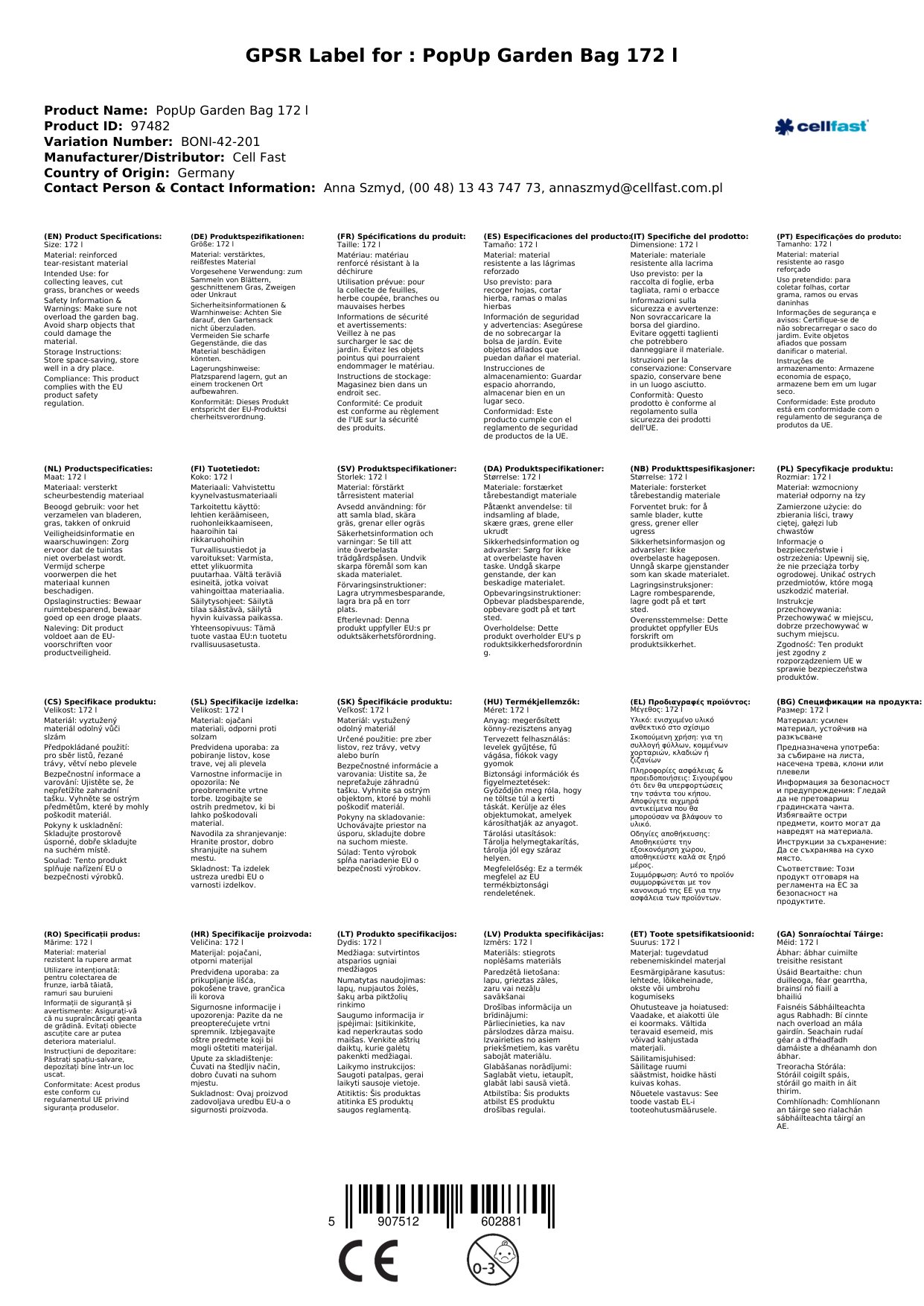Déan obair do ghairdín níos éifeachtaí agus níos éasca leis an mála gairdín pop-up 172 L ardchaighdeáin seo. Is é an mála seo an chabhair iontach chun duilleoga, féar, craobhacha, agus bruscar gairdín eile a bhailiú. Mar gheall ar a ábhar láidir, reißfest, agus a cháilíocht treisithe, tá saol fada agus feidhmíocht iontaofa ráthaithe agat le gach úsáid. Déan glanadh do ghairdín níos simplí agus faigh taithí ar cé chomh praiticiúil is féidir le mála bruscair gairdín a bheith.
