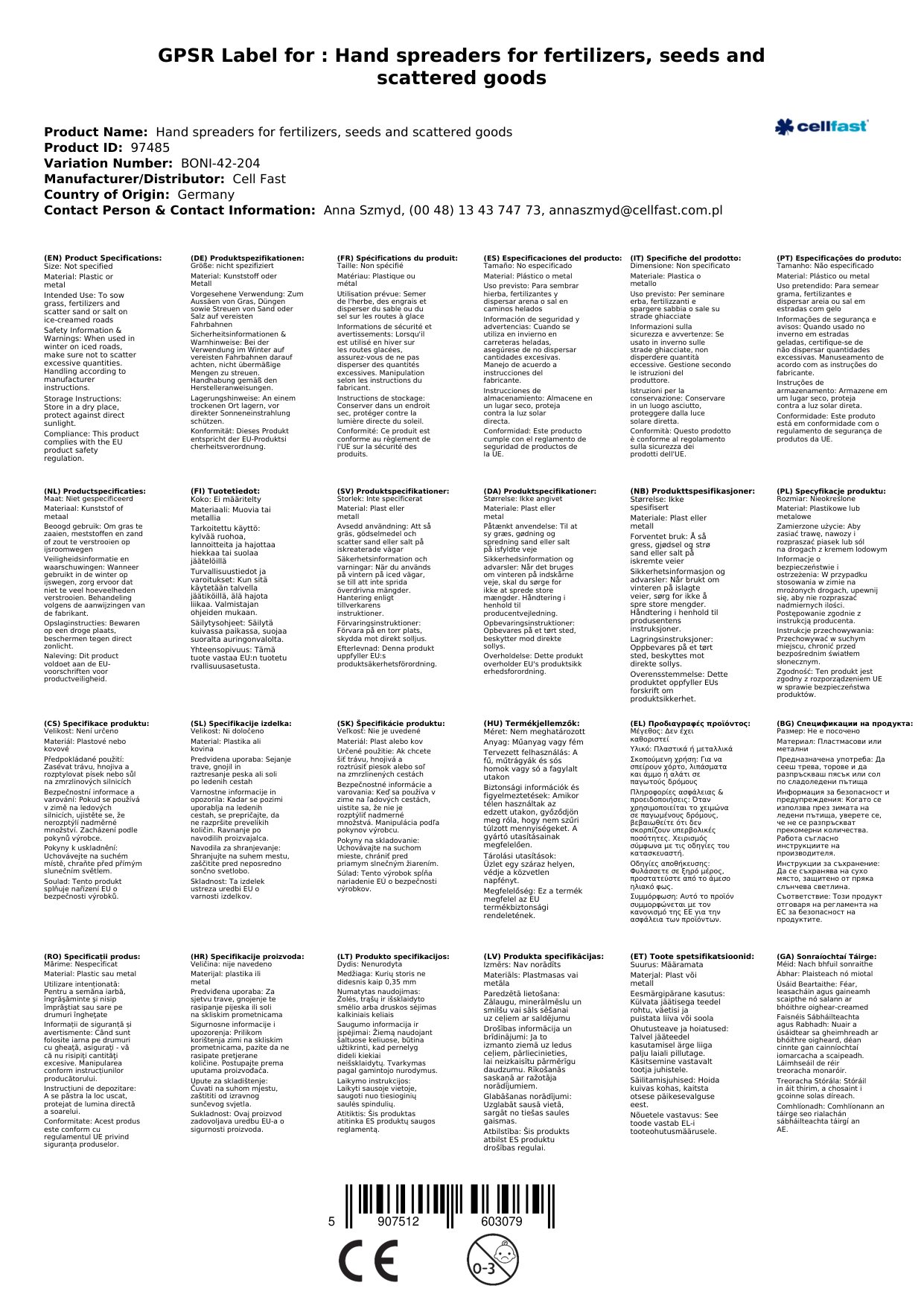 An bhfuil tú ag lorg bealach simplí agus éifeachtach le leasachán, síolta, nó ábhair scaipthe eile a dháileadh i do ghairdín? Is é ár leathadóir láimhe an réiteach iontach duit. Tá sé an-ildánach, cibé acu le haghaidh cur féir, leasachán a chur i bhfeidhm, nó seirbhís gheimhridh. Leis an gcrannchur praiticiúil, is féidir leat an dáileog a rialú go beacht, agus ar an gcaoi sin toradh cothrom a bhaint amach.