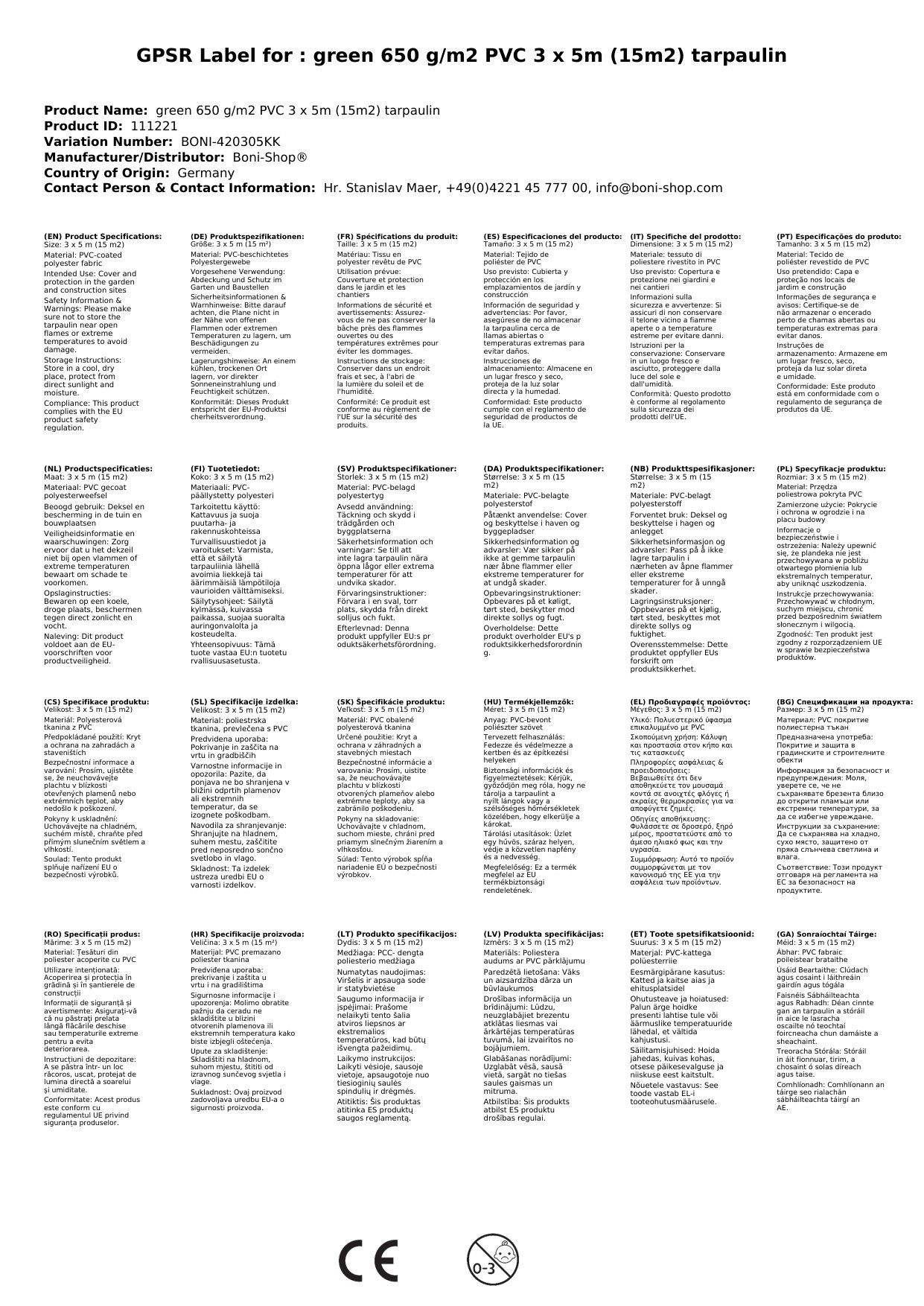 Ag Boni-Shop, gheobhaidh tú clúdaigh tarpaulin PVC ardchaighdeáin ar phraghsanna córa. Cuirimid ar fáil duit: