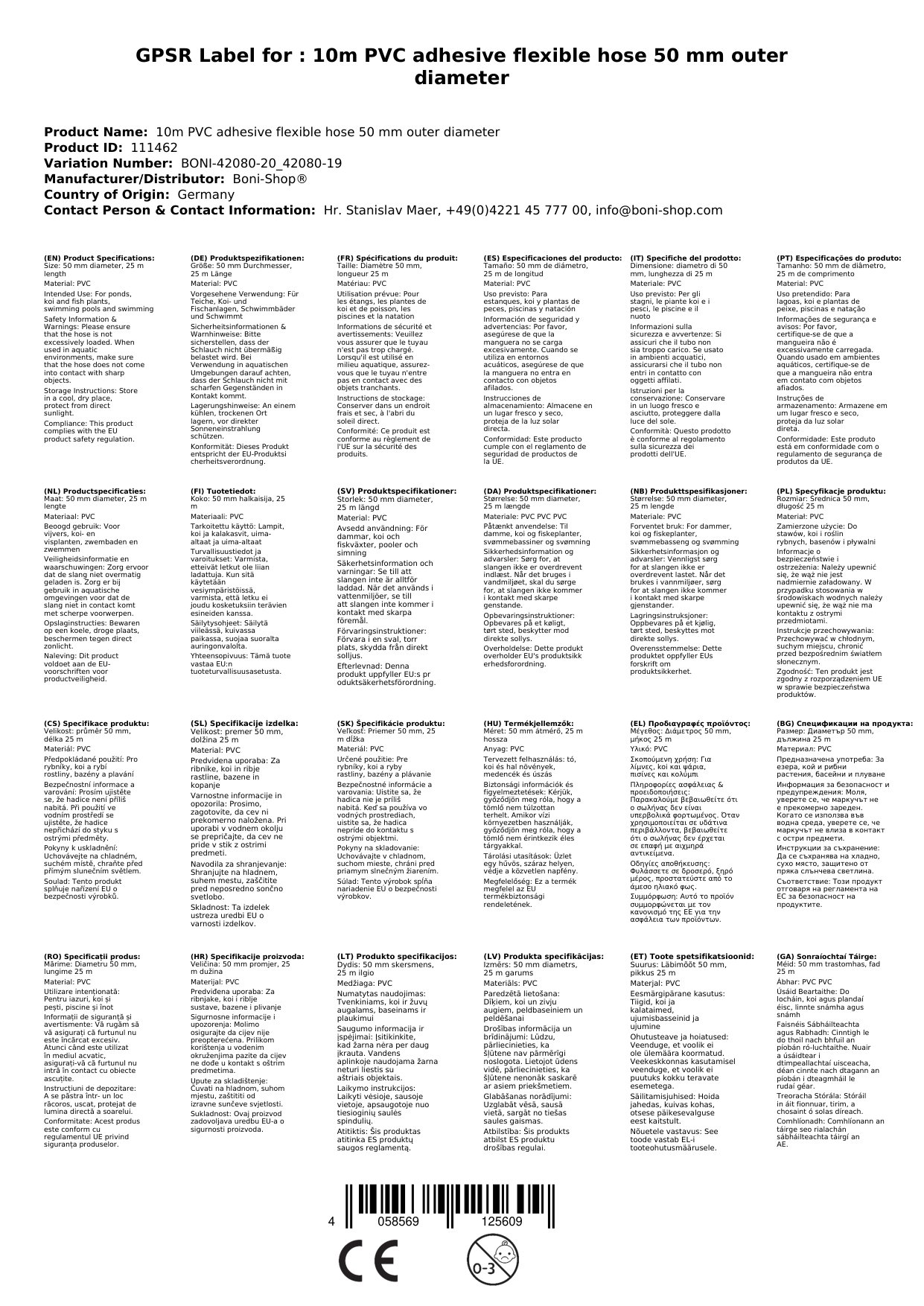 Píobán PVC Solúbtha 50mm, 10m le haghaidh Uisce, Linn Snámha & Teich