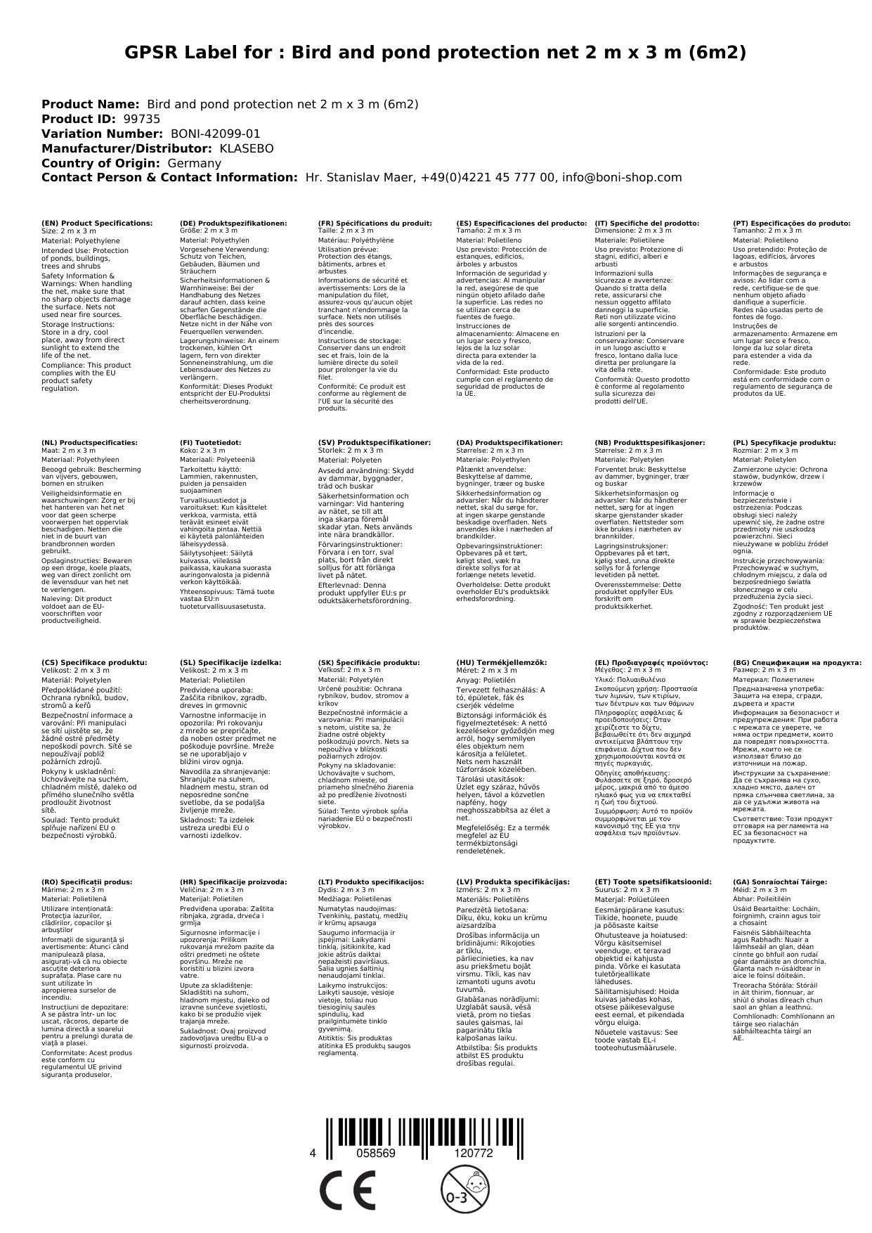 An bhfuil tú ag iarraidh do lochán a chosaint ar éin agus smionagar? An bhfuil tú ag lorg bealach éifeachtach chun do chrainn agus toir a chosaint ar dhamáiste? Tá an Glan Cosanta Locháin agus Éanlaithe foirfe duit. Cinntíonn sé cosaint iontach do locháin, foirgnimh, crainn agus toir. Stopann sé go hiontaofa damáiste costasach ó éin agus ainmhithe beaga.