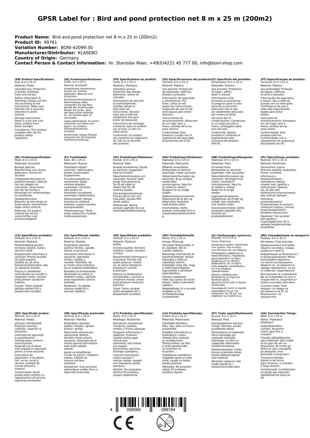 Cuir ceist chun níos mó a fhoghlaim faoin táirgeGlan Cosanta Dobharáin, Glan Cosanta Éan, 8 m x 25 m (200m²)