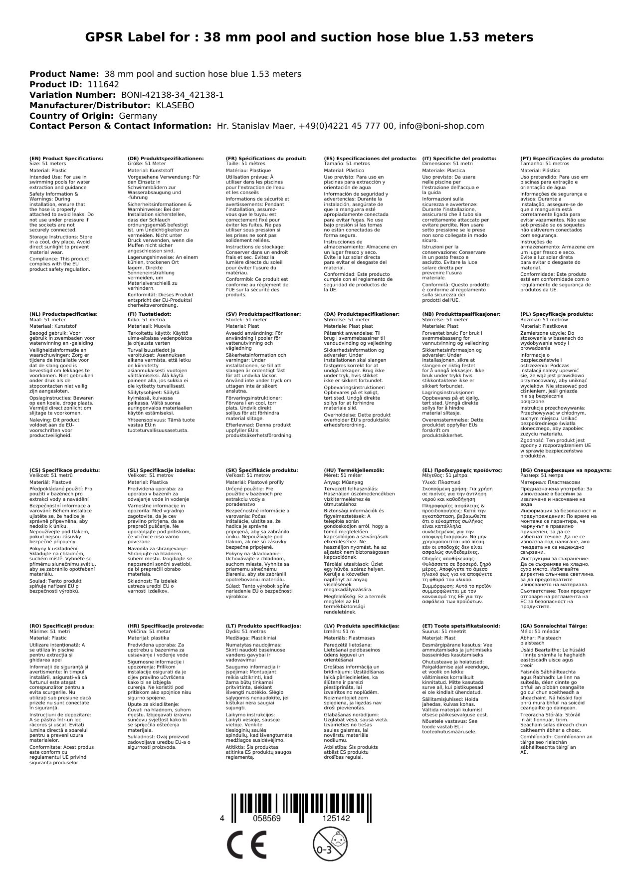 Cuireann ár bpíobán linn snámha 38 mm an tsolúbthacht agus an chobhsaíocht ar fáil duit a theastaíonn uait le haghaidh glanadh linn snámha éifeachtach. Le fad 1.5 méadar agus poileitiléin láidir, tá sé oiriúnach d'fheidhmchláir phríobháideacha agus ghairmiúla araon. Cén fáth go bhfuil sé seo tábhachtach duit: Faigheann tú píobán buan agus iontaofa a fhágann go bhfuil cúram linn snámha i bhfad níos éasca.