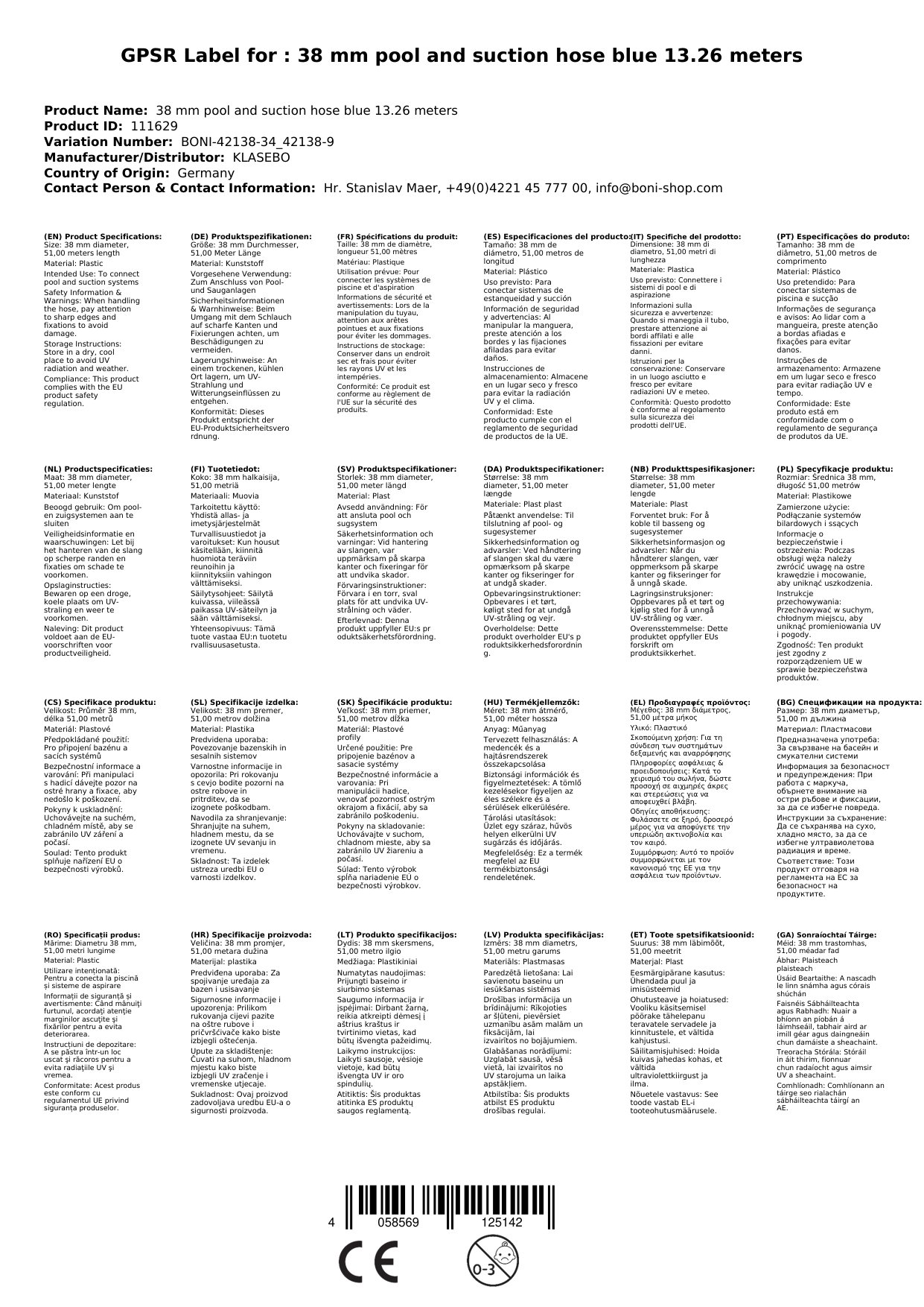 Cuireann ár bpíobán linn snámha 38mm réiteach iontaofa ar fáil duit le haghaidh glanadh linne snámha. Le fad 13.5 méadar agus dath gorm, tá sé oiriúnach d'fheidhmchláir éagsúla. Déanann an tógáil láidir agus an láimhseáil éasca cúntóir fíor-riachtanach dó. Cén fáth a bhfuil sé seo tábhachtach duit: Faigheann tú píobán fada buan agus praiticiúil a fhágann go bhfuil cúram linne níos éasca.
