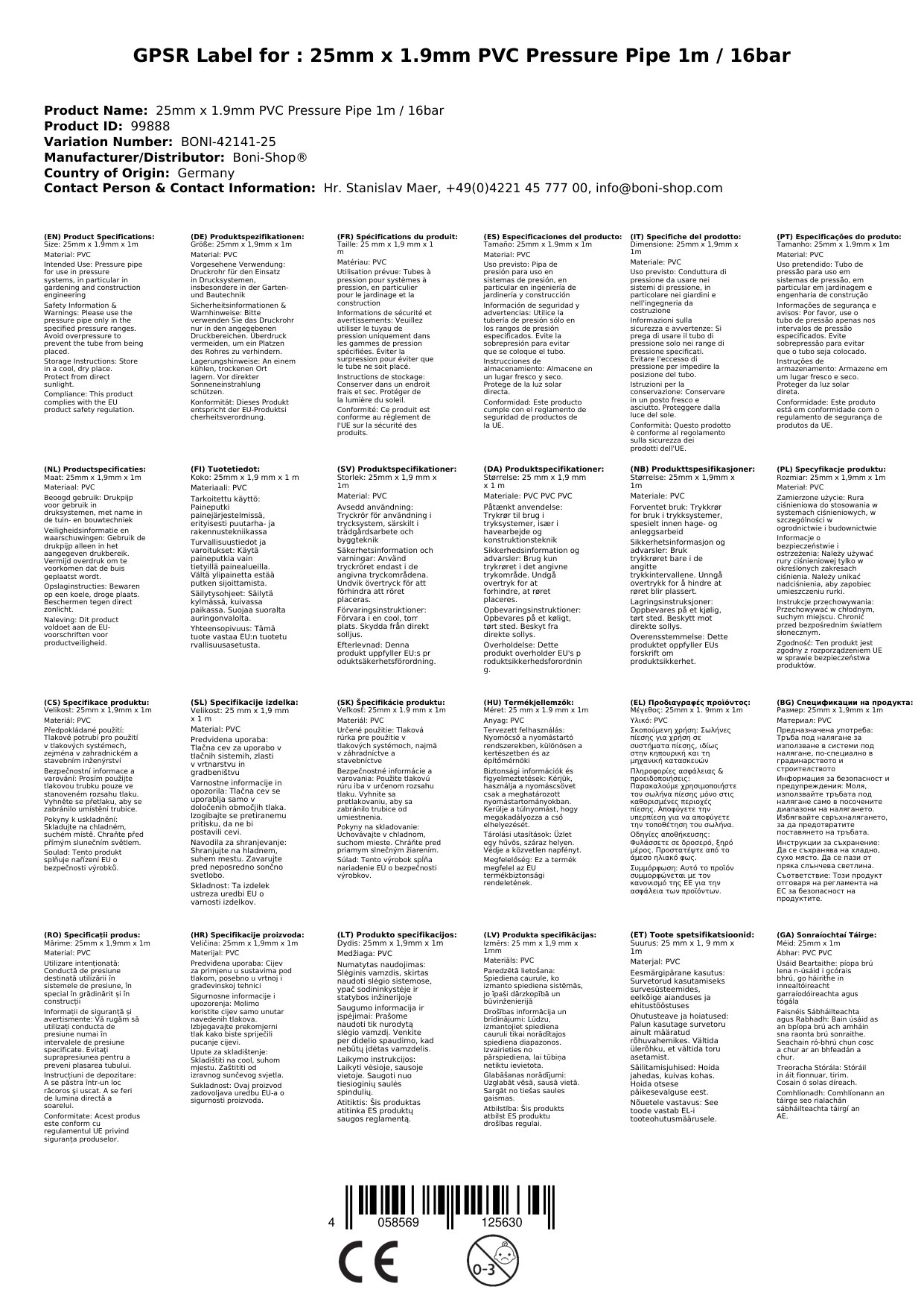 | PVC-U | PN16 | Réidh | 1m | 25mm | 1,9mm |