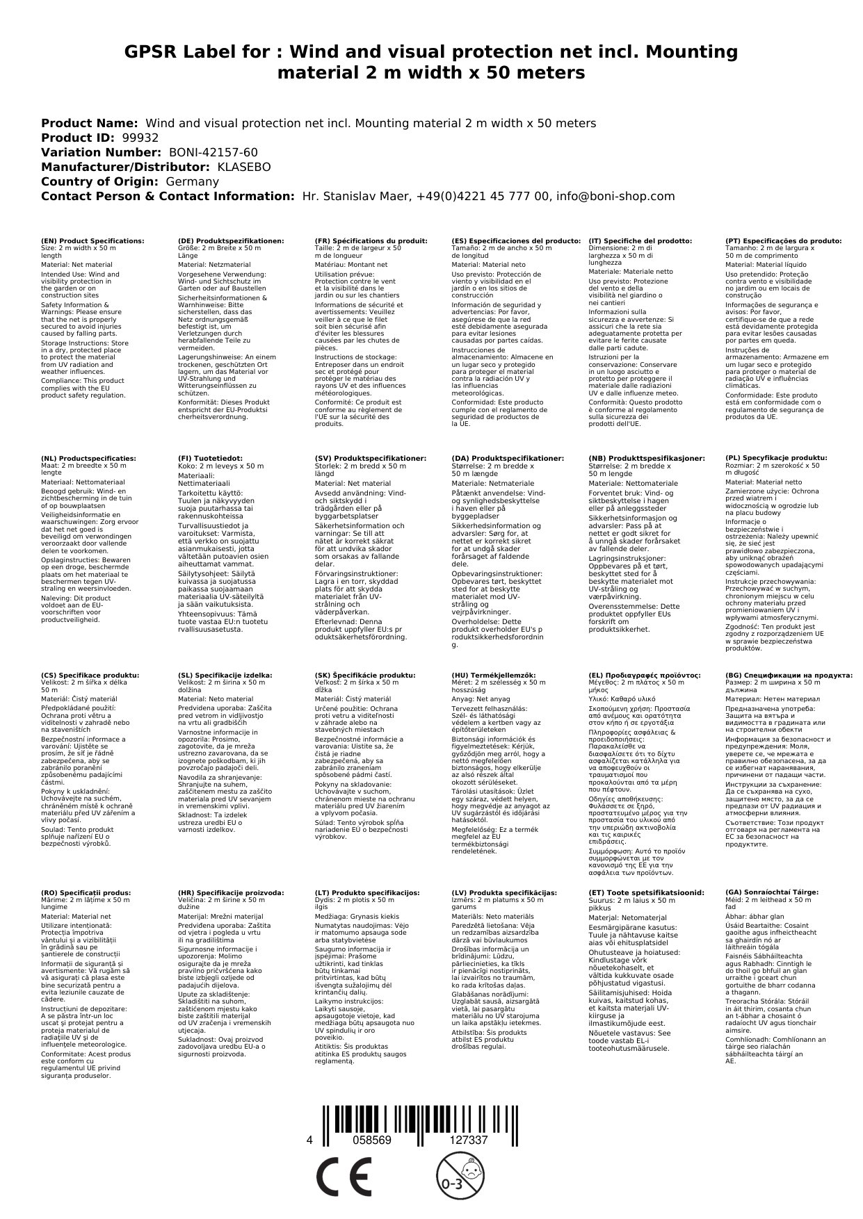 Cuireann ár Líontán Cosanta Príobháideachta agus Gaoithe cosaint iontaofa ar fáil do do ghairdín nó do bhalcóin. Le leithead 2 mhéadar agus fad 50 méadar, tá sé oiriúnach d'fheidhmchláir éagsúla. A bhuí leis an ábhar ceangail a chuirtear ar fáil, lena n-áirítear ceangail cábla, is féidir leat an líontán a cheangal go héasca agus go tapa. Cén fáth a bhfuil sé seo tábhachtach duit: Faigheann tú trealamh iomlán a thairgeann cosaint agus príobháideacht láithreach duit.