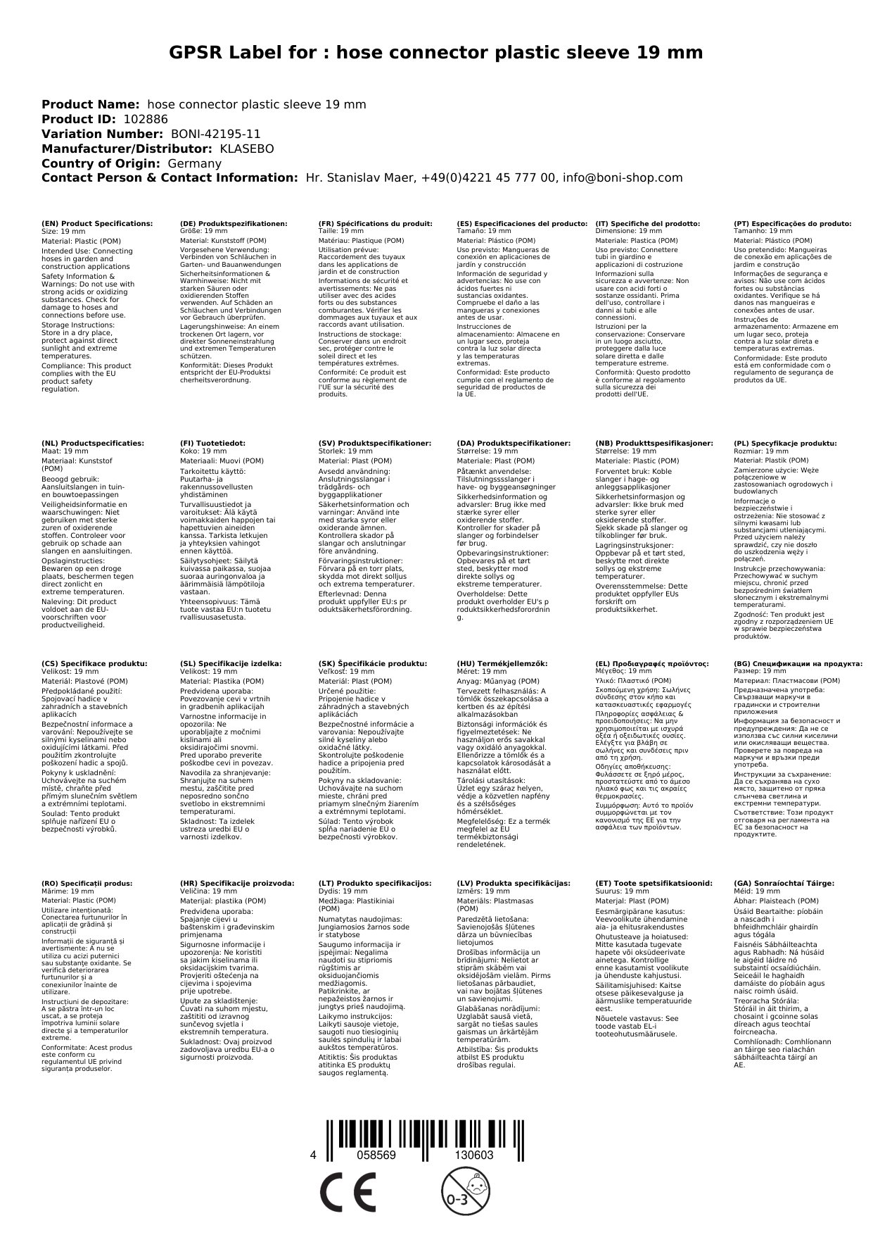 Ceanglóir Feadán Plaisteach Tuille 19 mm