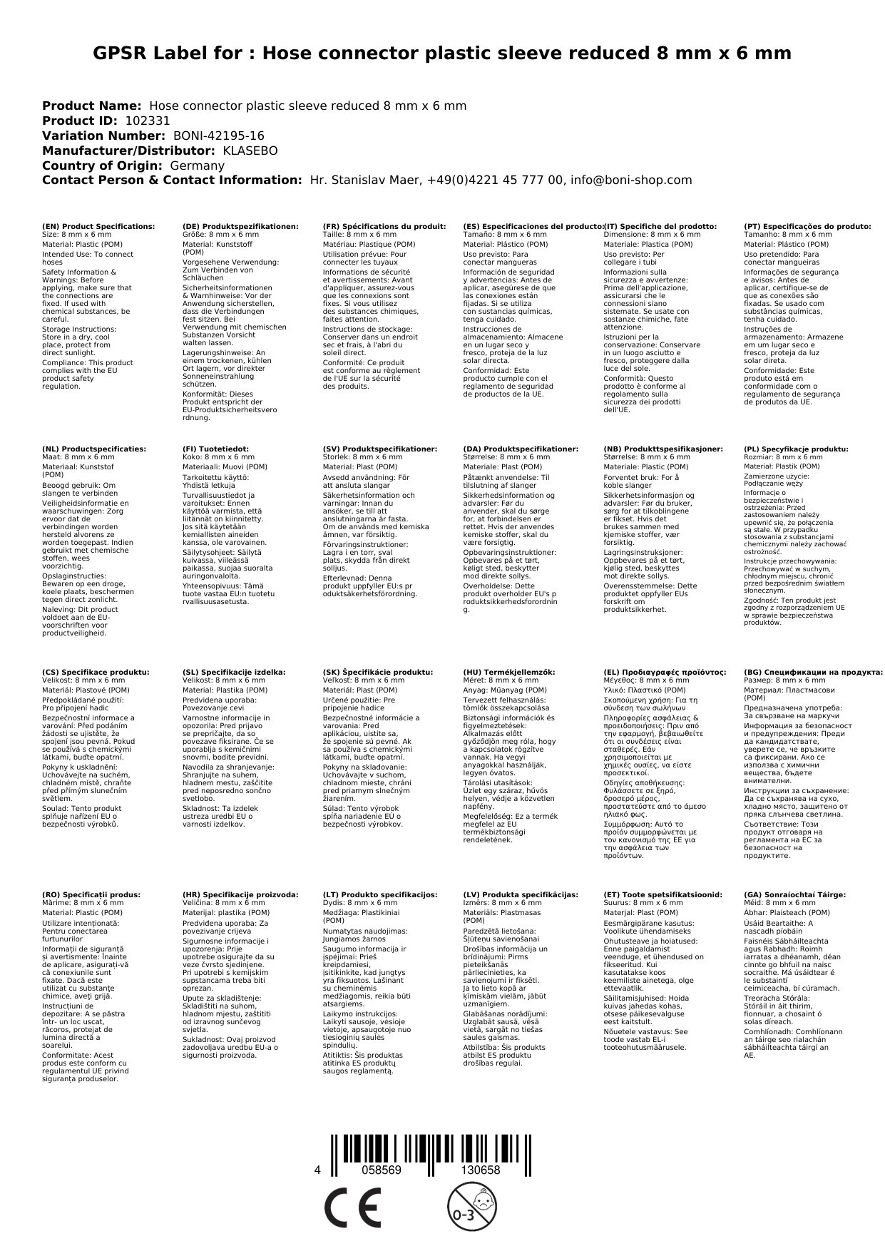 Cuireann ár gCúplóir Píobáin nasc iontaofa ar fáil do do phíobáin. Laghdaítear é ó 8 mm go 6 mm agus tá sé déanta as plaisteach láidir. Tá an cúplóir frithsheasmhach in aghaidh go leor ceimiceán agus tá sé oiriúnach go hidéalach d’fheidhmchláir éagsúla. Cén fáth go bhfuil sé seo tábhachtach duit: Faigheann tú cúplóir buan agus ilúsáideach do do chórais uisciúcháin agus píobáin.