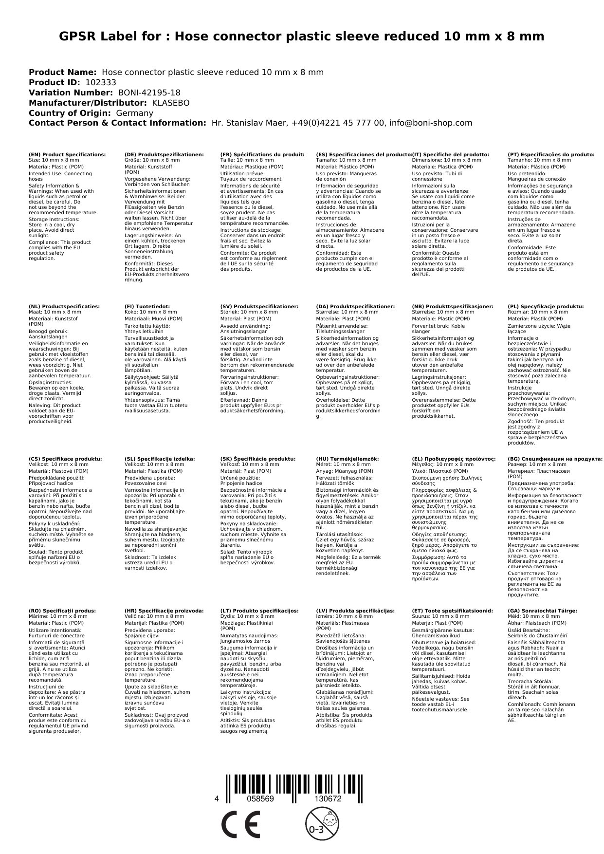 Ceanglóir Píobáin Plaisteach Laghdaithe 10 mm x 8 mm