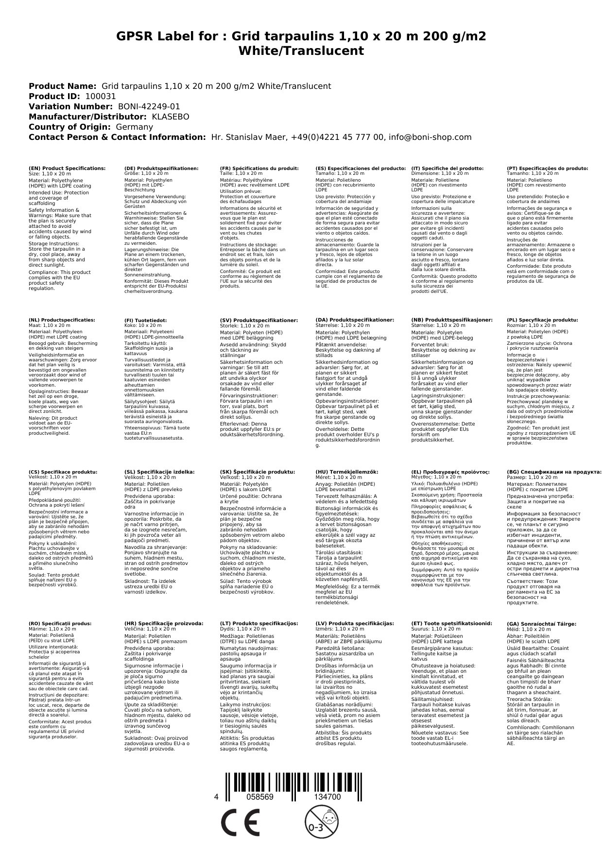 | Méid | 1.10 x 20 m |