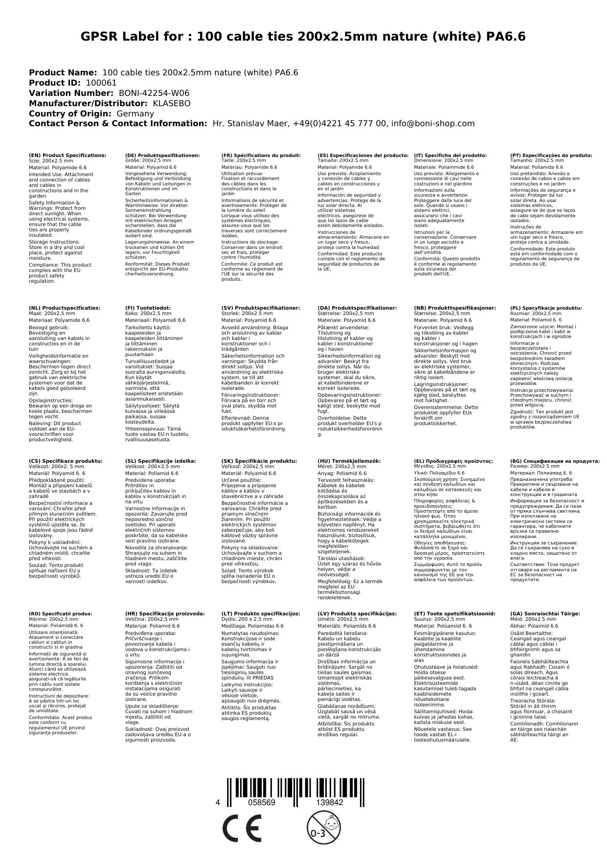 Cuir ceist chun níos mó a fhoghlaim faoin táirge100 Ceanglóir Cábla 200x2, 5mm Nádúr (bán) PA6.6