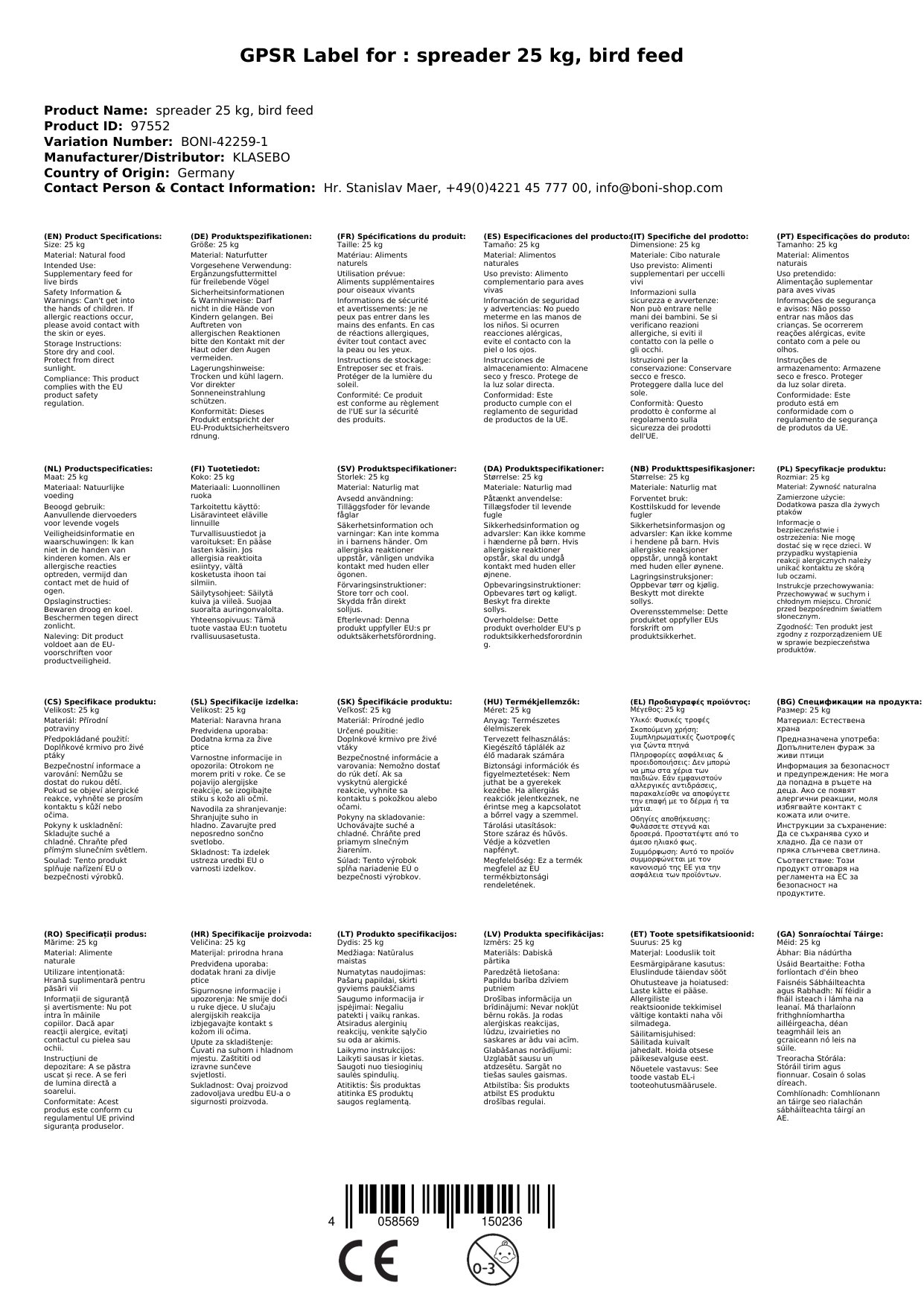 - Ceannaigh Bia Éan ar Phraghas Réasúnta: Leis an bpacáiste praiticiúil 25 kg seo, is féidir leat a chinntiú go mbeidh go leor bia i gcónaí ag do chairde cleite. Tá an bia scaipthe ar fáil i gcainníochtaí móra ionas gur féidir leat pleanáil go fadtéarmach agus airgead a shábháil.