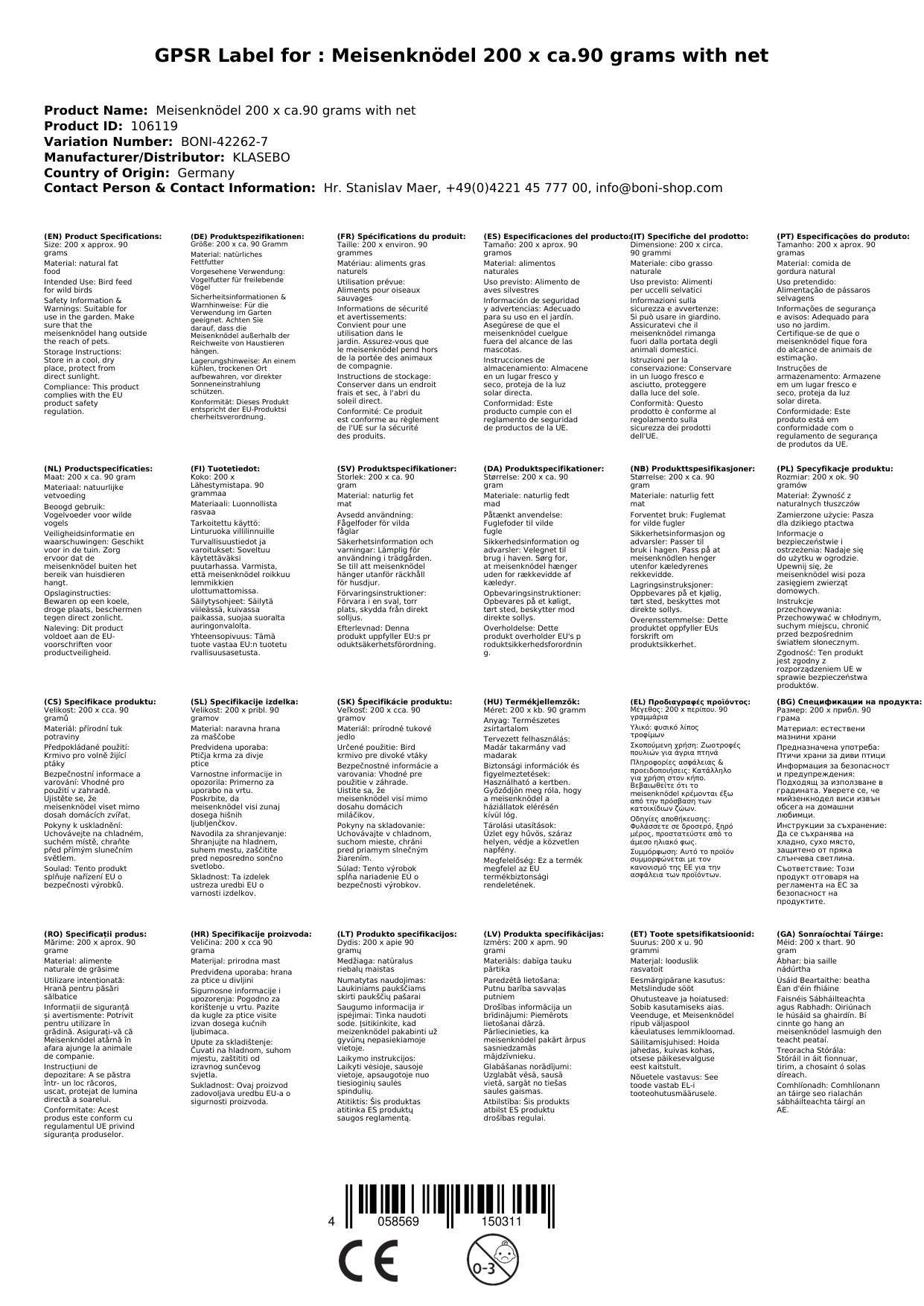 Cuir ceist chun níos mó a fhoghlaim faoin táirgeCíste ramhar éan 200 x ca.90g le líontán, Beatha éan fiáin, Císte ramhar