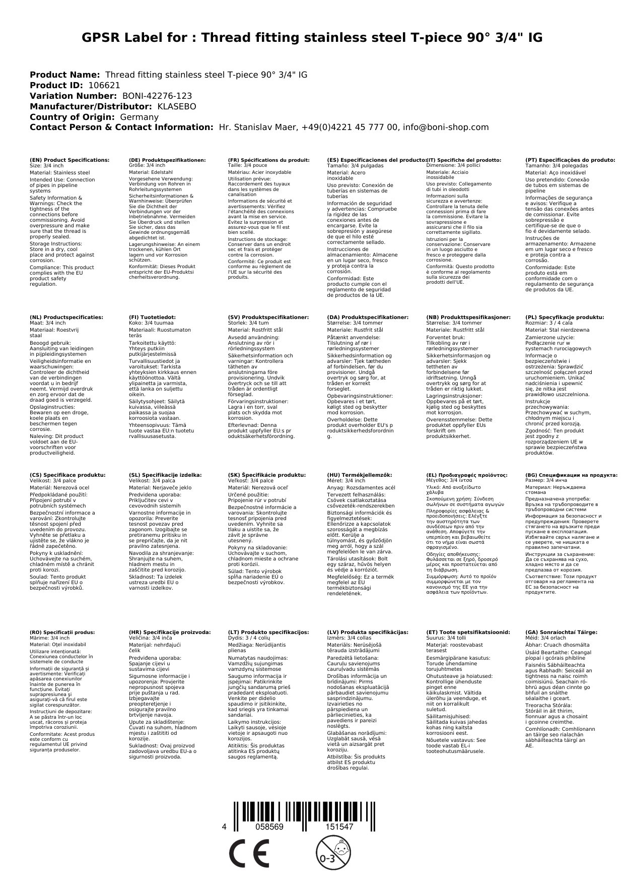 Ábhar: Cruach Dhosmálta 316 (V4A Cruach de réir DIN 1.4401)