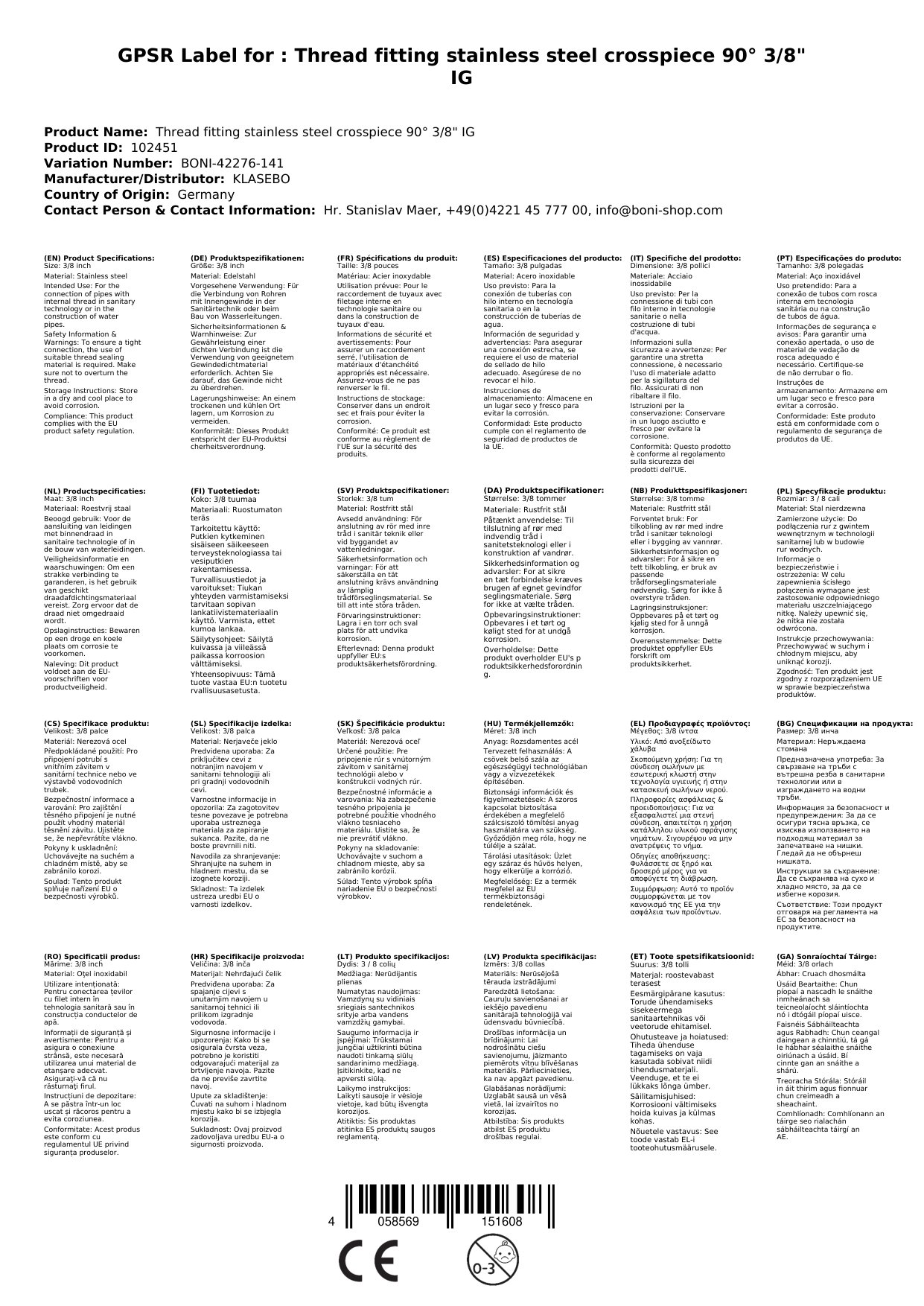 | 4 x snáithe inmheánach | 3/8" | 10 bar | -20 ° C go +200 ° C | Cruach dhosmálta 316 (V4A) |