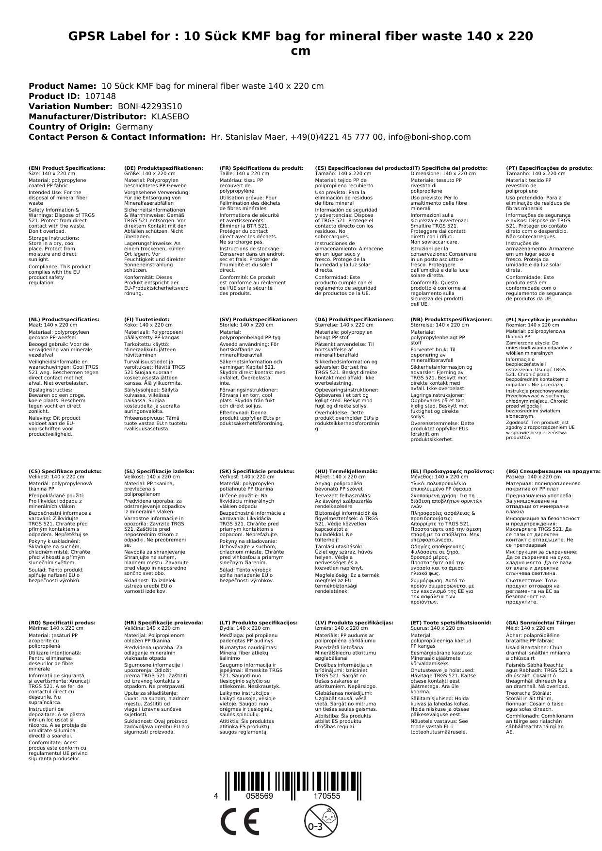 Cinntíonn ár málaí KMF diúscairt shábháilte agus éifeachtach ar ábhair ghuaiseacha. Le méid mór 140 x 220 cm, tá siad oiriúnach do mhéideanna suntasacha dramhaíola. Déanta as ábhair ardchaighdeáin, tá siad frithsheasmhach in aghaidh cuimilt agus briseadh. Bain úsáid astu chun asbesto, snáithín mianrach agus dramhaíl tógála eile a bhainistiú go sábháilte. Cén fáth go bhfuil sé seo tábhachtach duit: is féidir leat brath ar réiteach iontaofa chun do shábháilteacht agus comhlíonadh a chinntiú.