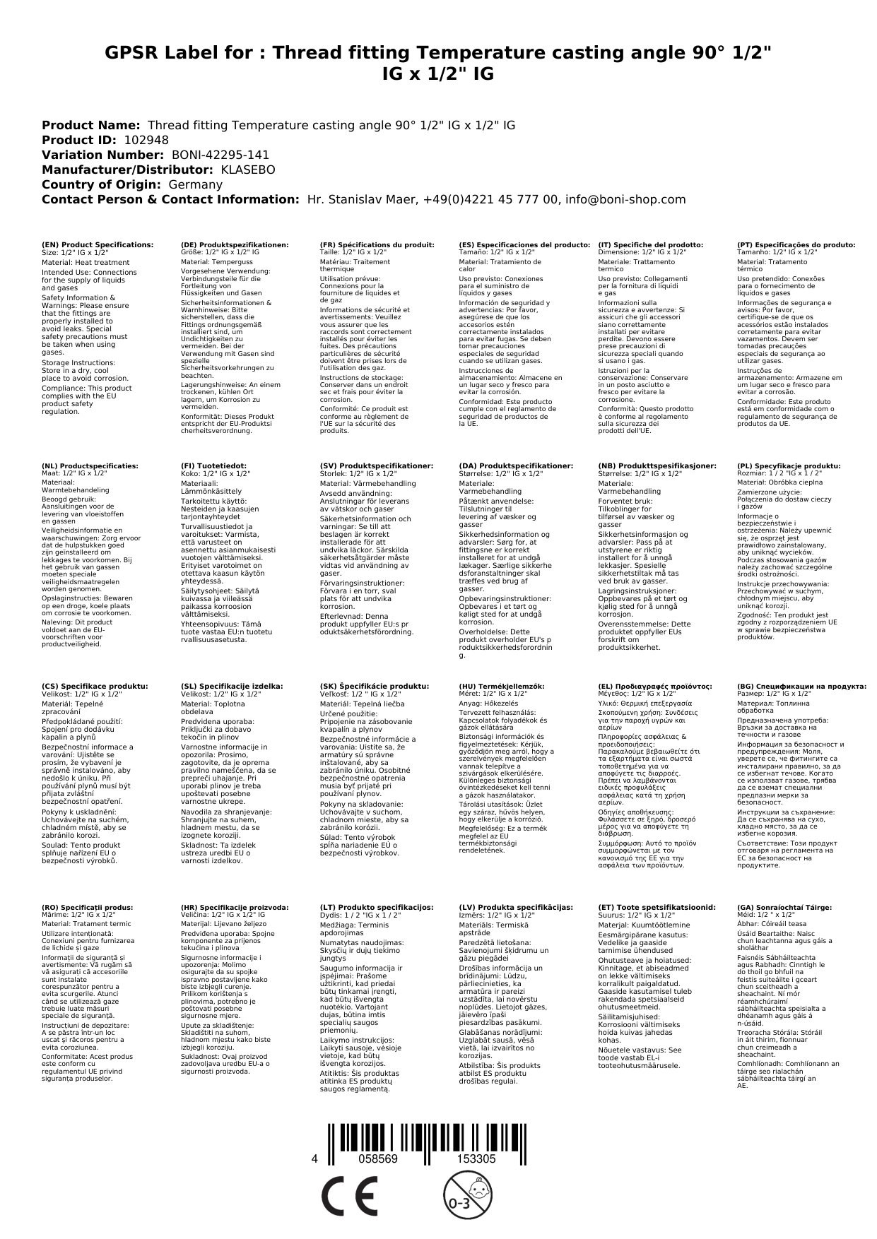 An bhfuil tú ag lorg feistiú snáithe iontaofa agus buan do do suiteálacha sláintíochta, téimh nó gáis? Cuireann ár n-Uillinn Iarainn Teilgthe 90° 1/2" IG x 1/2" IG an réiteach foirfe ar fáil duit. Tá sé láidir, galbhánaithe agus ceadaithe ag DVGW, ionas gur féidir leat brath ar a cháilíocht agus a shábháilteacht. Leis an bhfeistiú seo, nascann tú píopaí go sábháilte agus go buan. Príomhshonraíochtaí, Sonraíochtaí Teicniúla, Gnéithe Táirge agus Buntáistí, Buntáistí, Feidhmiú, Ceisteanna Coitianta (FAQ), Cén fáth a cheannach uainn?