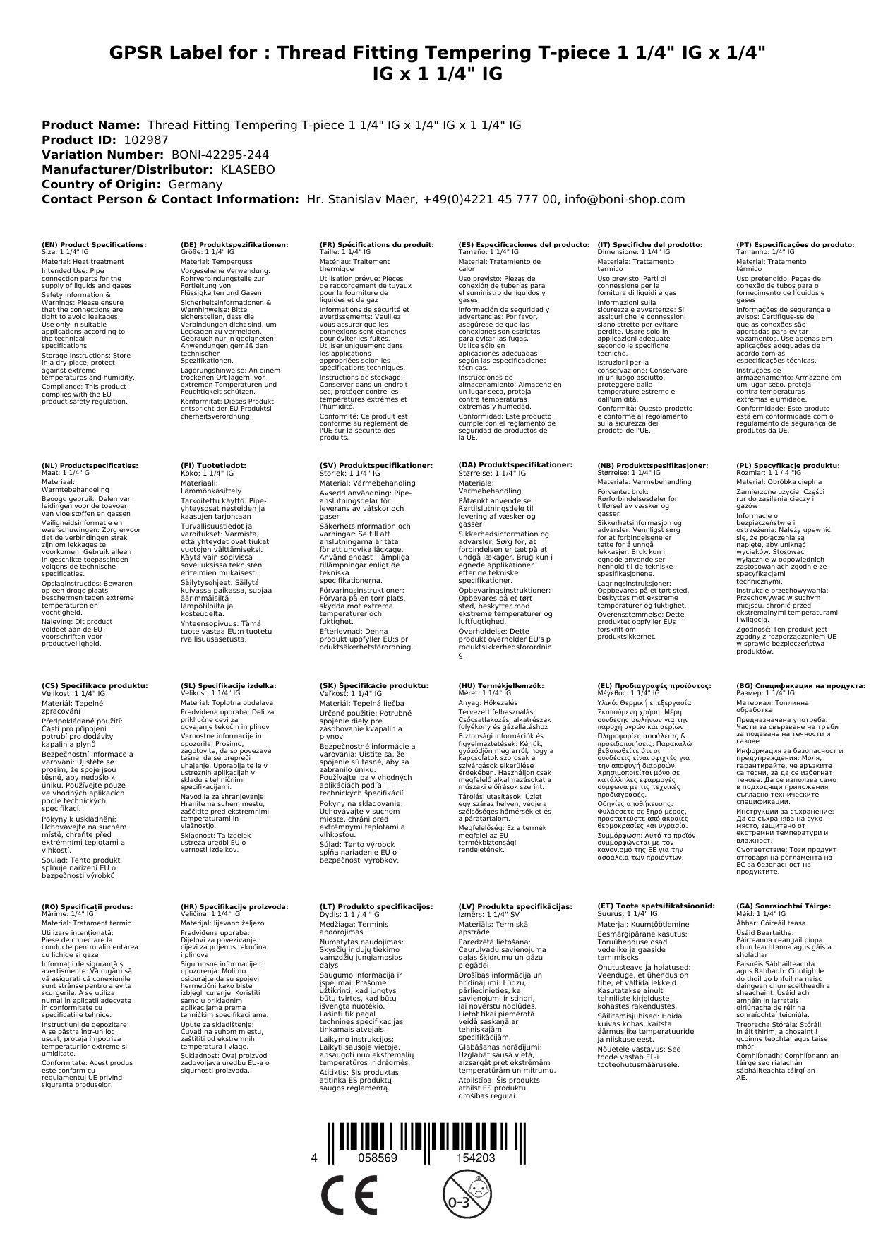T- phíosa Iarann Teilgthe, Feistiú Snáithe 1 1/4 orlach, Boni-Shop
