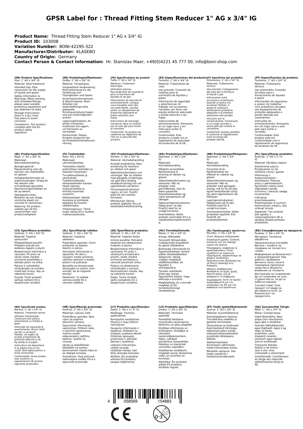 Ríomhphost na Duine Freagrach don AE: info@boni-shop.com