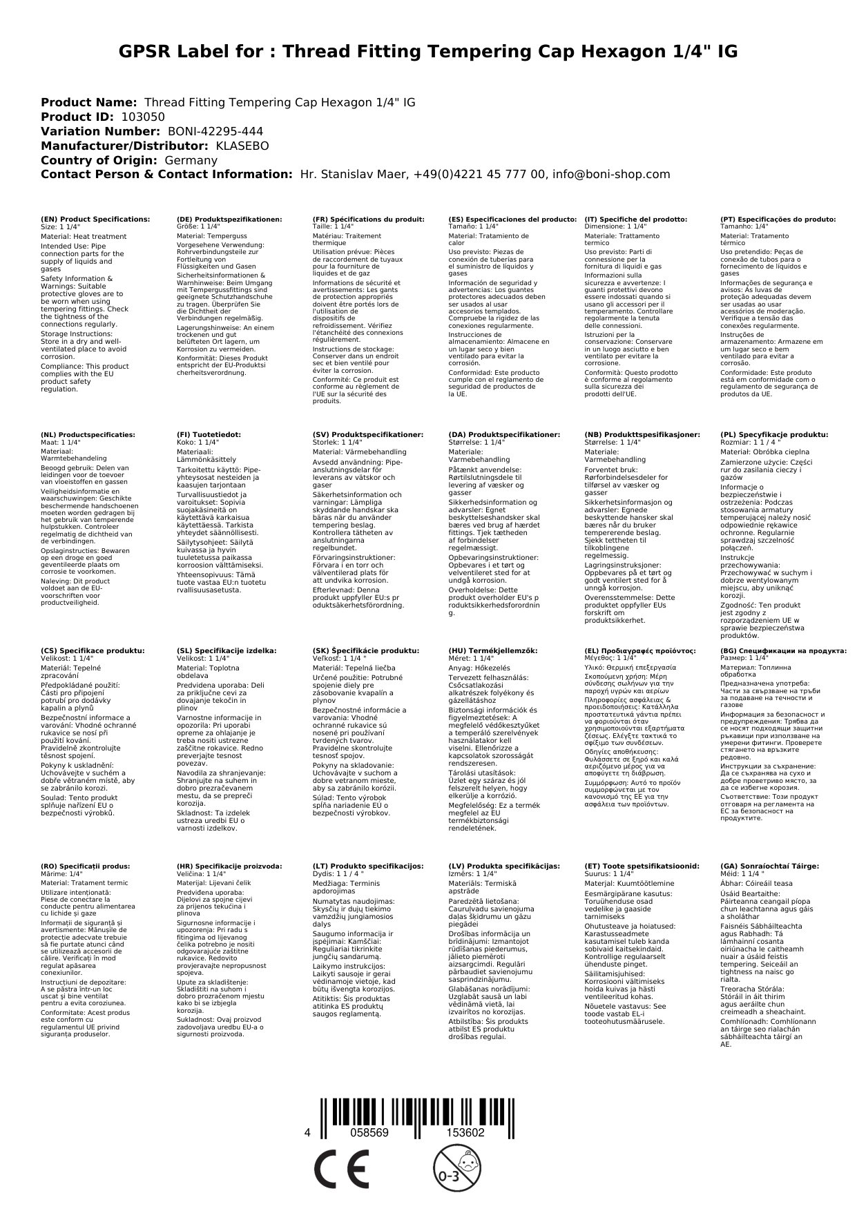 - Faomhadh DVGW: Ráthaíonn sé duit go gcomhlíonann an caipín na caighdeáin arda sábháilteachta do suiteálacha uisce óil.