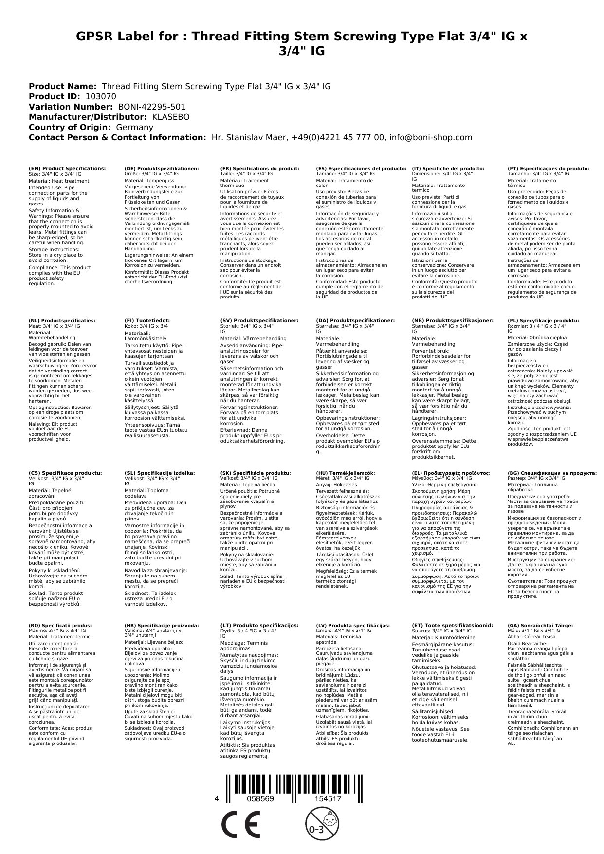 Tá snáitheanna na gcomhpháirteanna píopaí go léir déanta de réir na gcaighdeán ISO 7-1/EN 10226-1 (snáitheanna inmheánacha agus seachtracha) chomh maith le ISO 228-1 (cnónna ceangail na gcomhpháirteanna). Tá na snáitheanna seachtracha cónúil/cónúil. Tá na snáitheanna inmheánacha comhthreomhar/sorcóireach. Tugtar na snáitheanna go léir i n-orlach de réir réamhshocraithe. Déantar na snáitheanna a dhíont le hábhar díonta snáithe oiriúnach mar shampla téip díonta snáithe PTFE nó lín díonta snáithe.