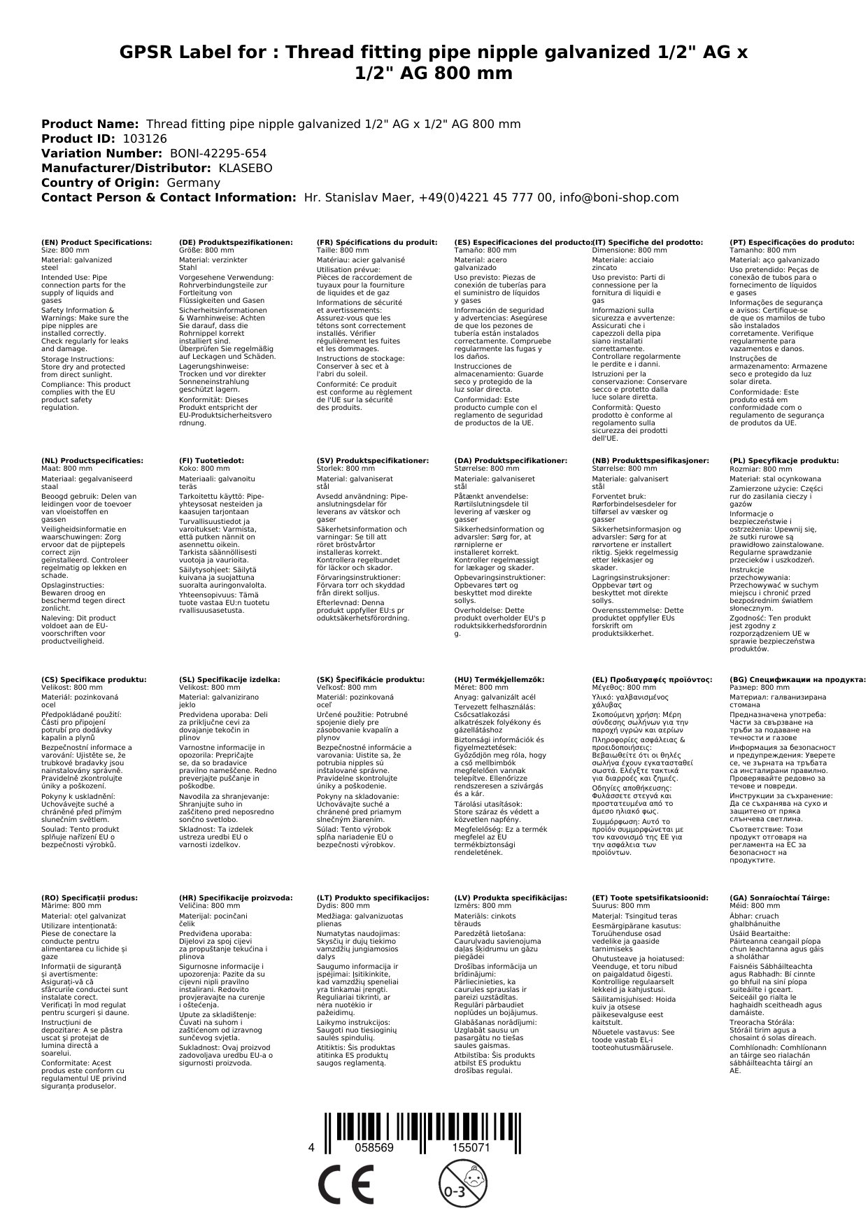 Is é an nipple píopa galbhánaithe seo an réiteach idéalach nuair is gá duit leachtanna nó gásanna a threorú go sábháilte agus go hiontaofa. Cibé an bhfuil sé le haghaidh córais sláintíochta, téimh nó gáis, seasann an cónascaire píopa seo na hualaí is airde. Le snáithe 1/2" AG x 1/2" AG agus fad 800 mm, tá sé an-versatile agus éasca a chur le chéile.
