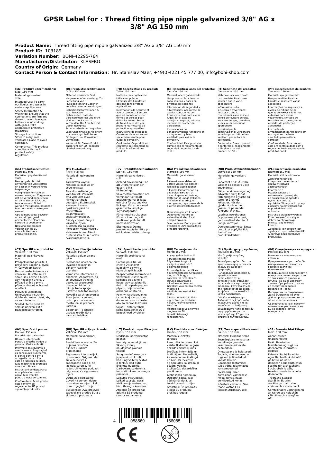 Cuir ceist chun níos mó a fhoghlaim faoin táirgeFeistiú Snáithe Sreangán Galbhánaithe 3/8" AG x 3/8" AG 150 mm