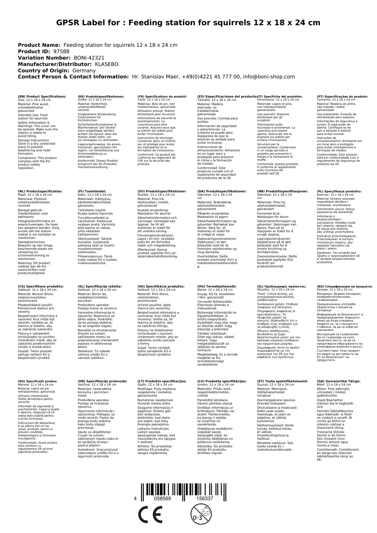 Is é ár bhFothaire Siorc Rua an réiteach iontach chun bia atá oiriúnach don speiceas a thairiscint do na creimirí beaga agus chun féachaint orthu ag an am céanna. Leis an dearadh dea-mhachnamhach agus an tógáil láidir, cuireann sé áit bheathaithe shábháilte agus tharraingteach ar fáil do na hEichhörn. Mar gheall ar an éascaíocht líonta agus an dearadh nádúrtha, is gá an stáisiún beathaithe seo a bheith ag gach leannán ainmhithe.