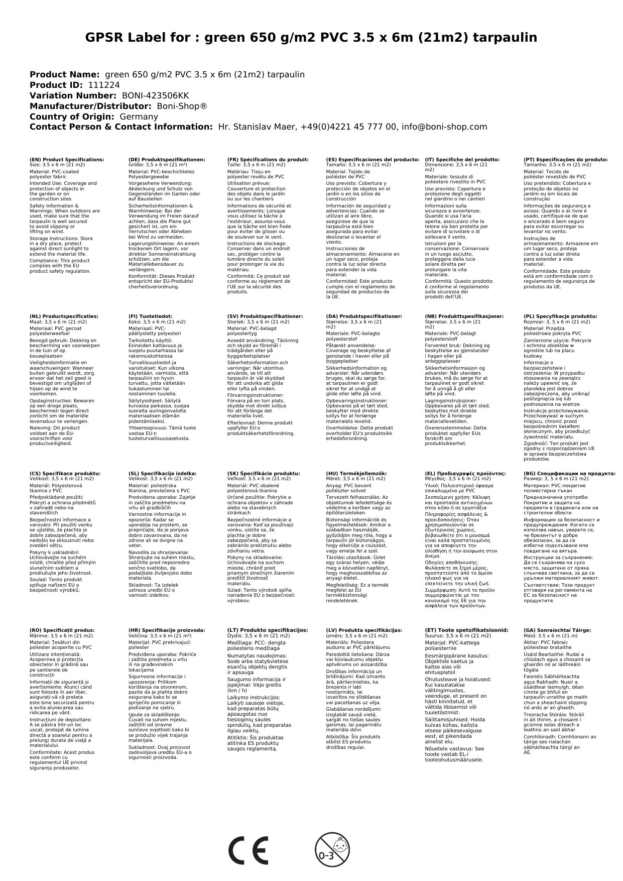 Cuir ceist chun níos mó a fhoghlaim faoin táirgeClúdach PVC 650g, 3,5 x 6m (21m²), Clúdach uiscedhíonach, reißfest