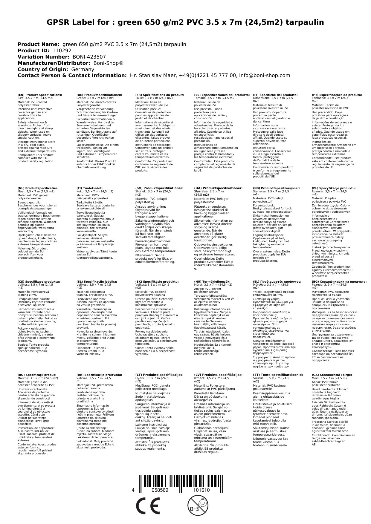 Cuir ceist chun níos mó a fhoghlaim faoin táirgeClúdach PVC, 650g/m², 3,5 x 7m (24,5m²), clúdach uiscedhíonach, UV-resistant, glas