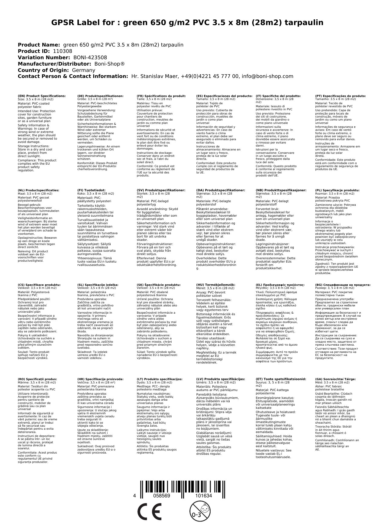 Cuir ceist chun níos mó a fhoghlaim faoin táirgeClúdach PVC, tarpaulin uiscedhíonach, 650g, 3,5 x 8m (28m²), clúdach gairdín, tarpaulin glas, uile-aimsire