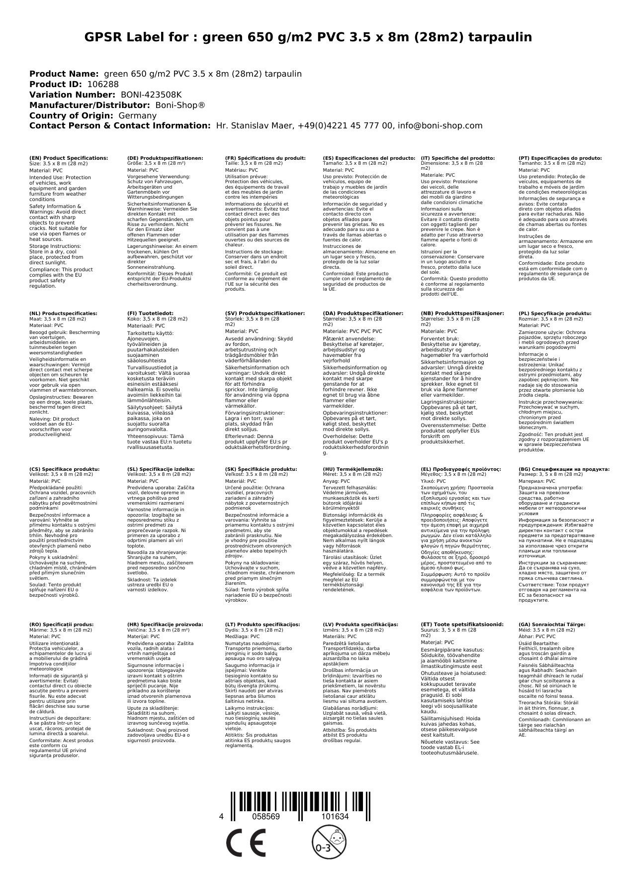 Clúdach Tarpaulin Trom Dleachta, 3.5 x 8m, Boni-Shop