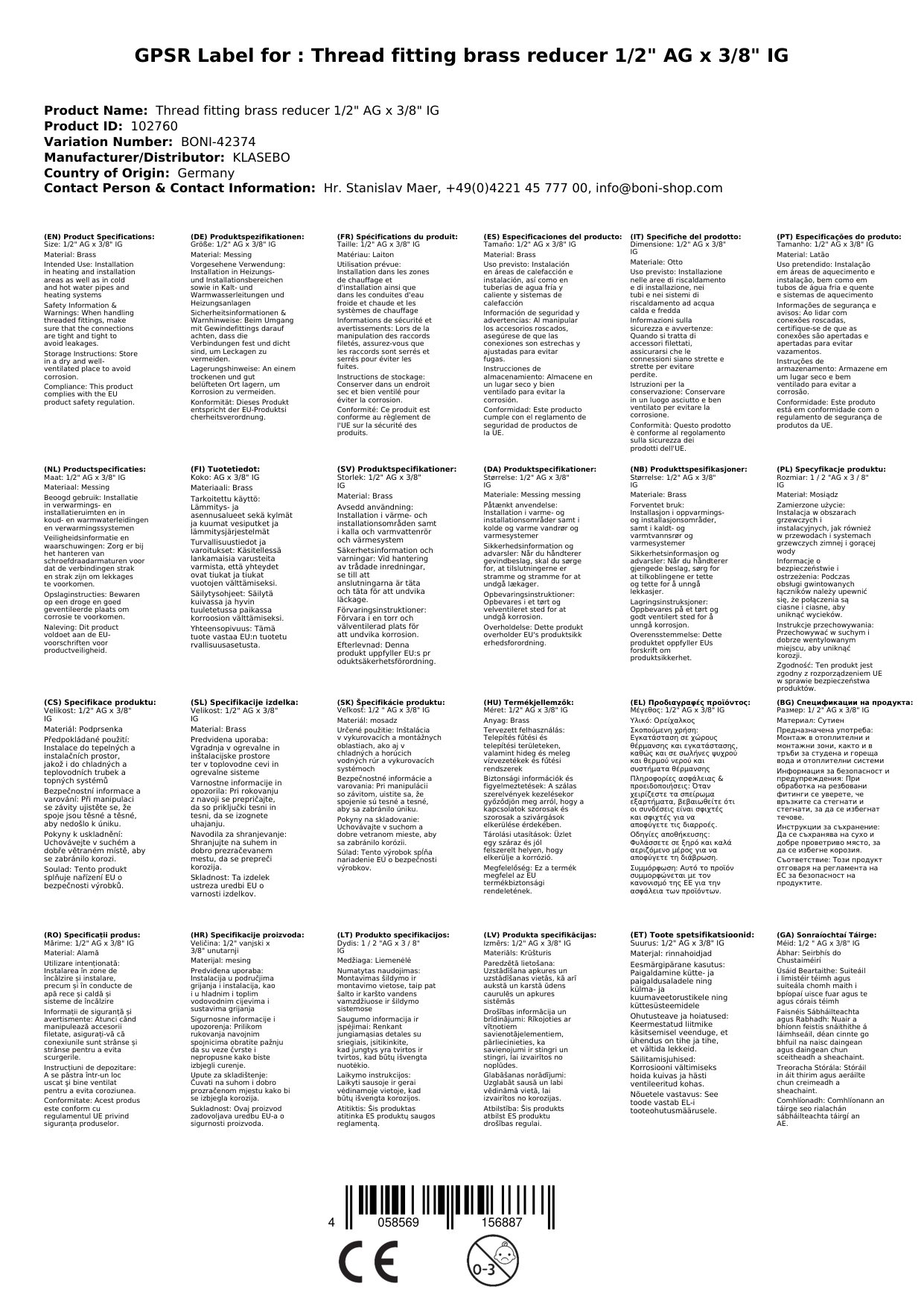 Feistiú Snáithe Práis, Laghdaitheoir Práis 1/2 go 3/8 AG/IG