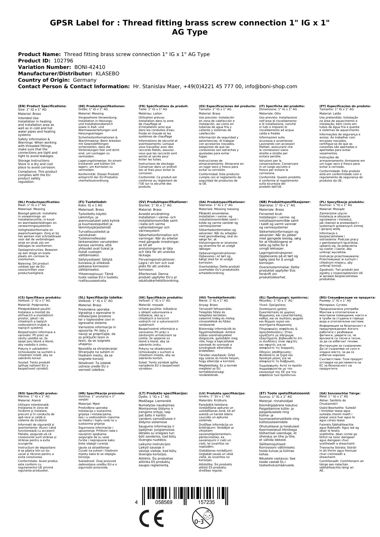 Ríomhphost na Duine Freagrach don AE: info@boni-shop.com