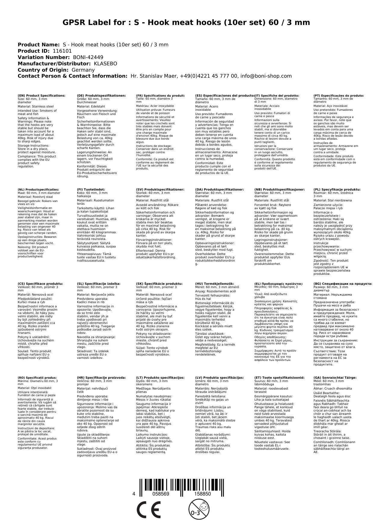 Cuir ceist chun níos mó a fhoghlaim faoin táirgeS - Crúcaí Feola (10-dealt) 60 / 3 mm