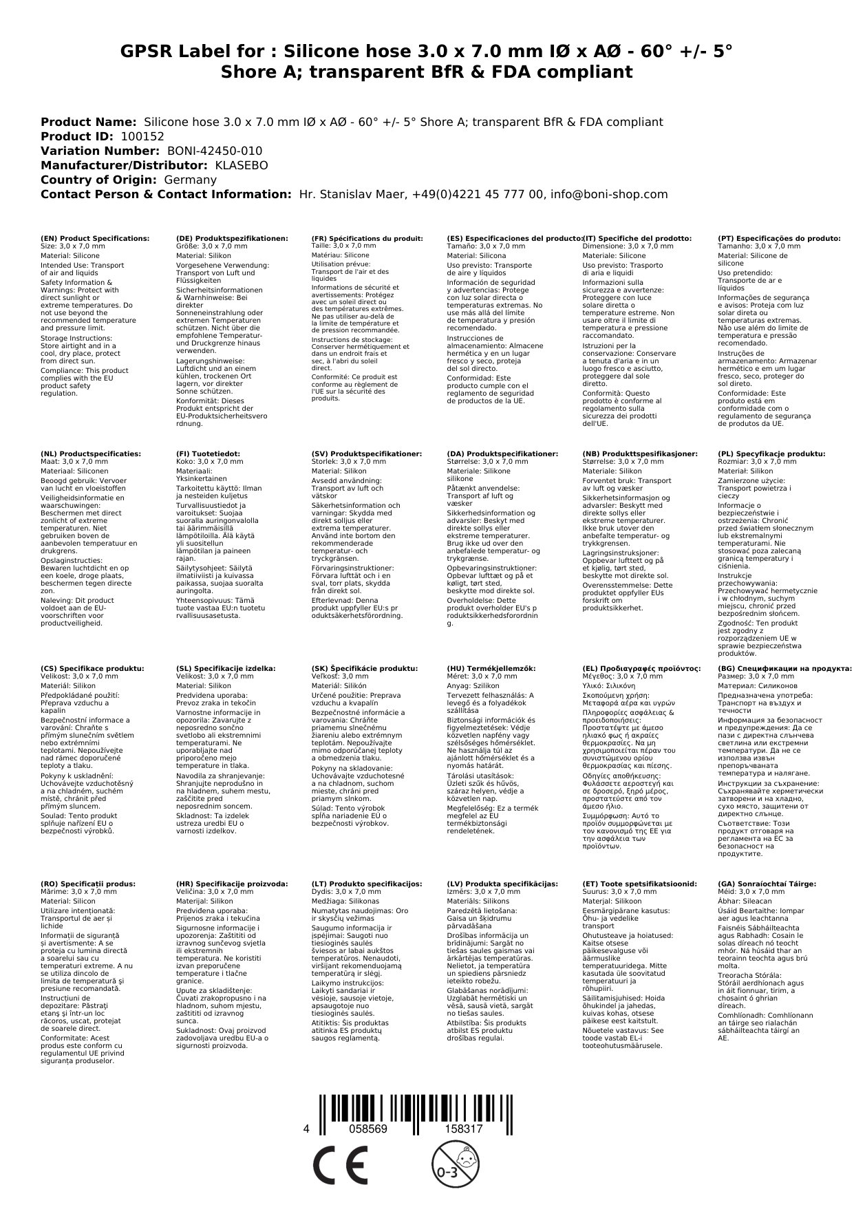 Cuir ceist chun níos mó a fhoghlaim faoin táirgeSilikonschlauch 3,0 x 7,0 mm IØ x AØ - 60° +/- 5° Shore A; transparent BfR & FDA konform