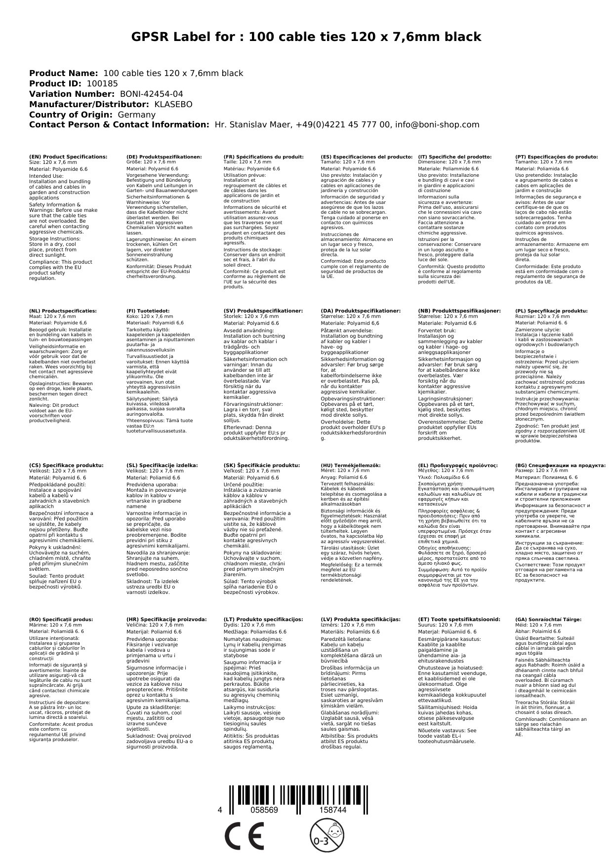 Tá na ceangail cábla déanta as Polaimíd 6.6 ardchaighdeáin, a bhfuil aithne air as a neart agus a fhriotaíocht.