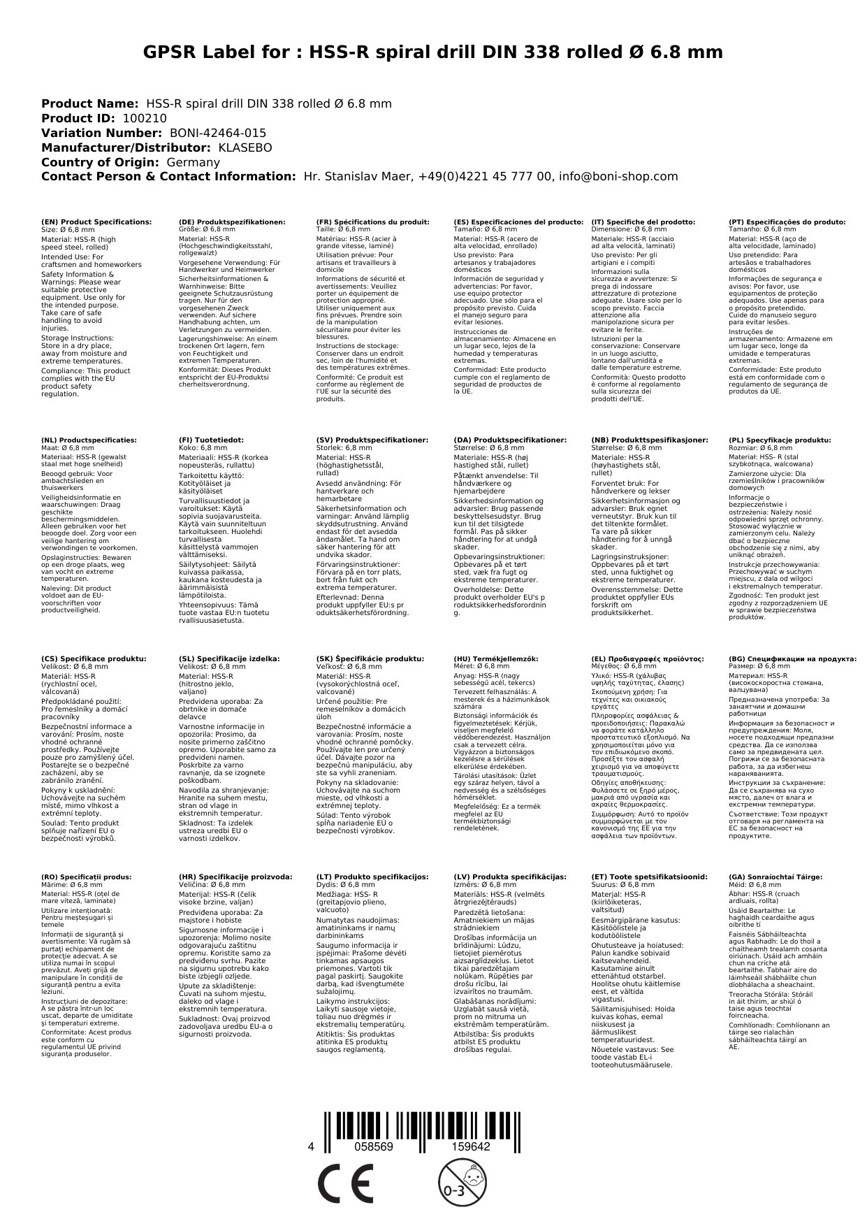 - Comhlíonann an caighdeán DIN 338 do na héilimh cháilíochta is airde