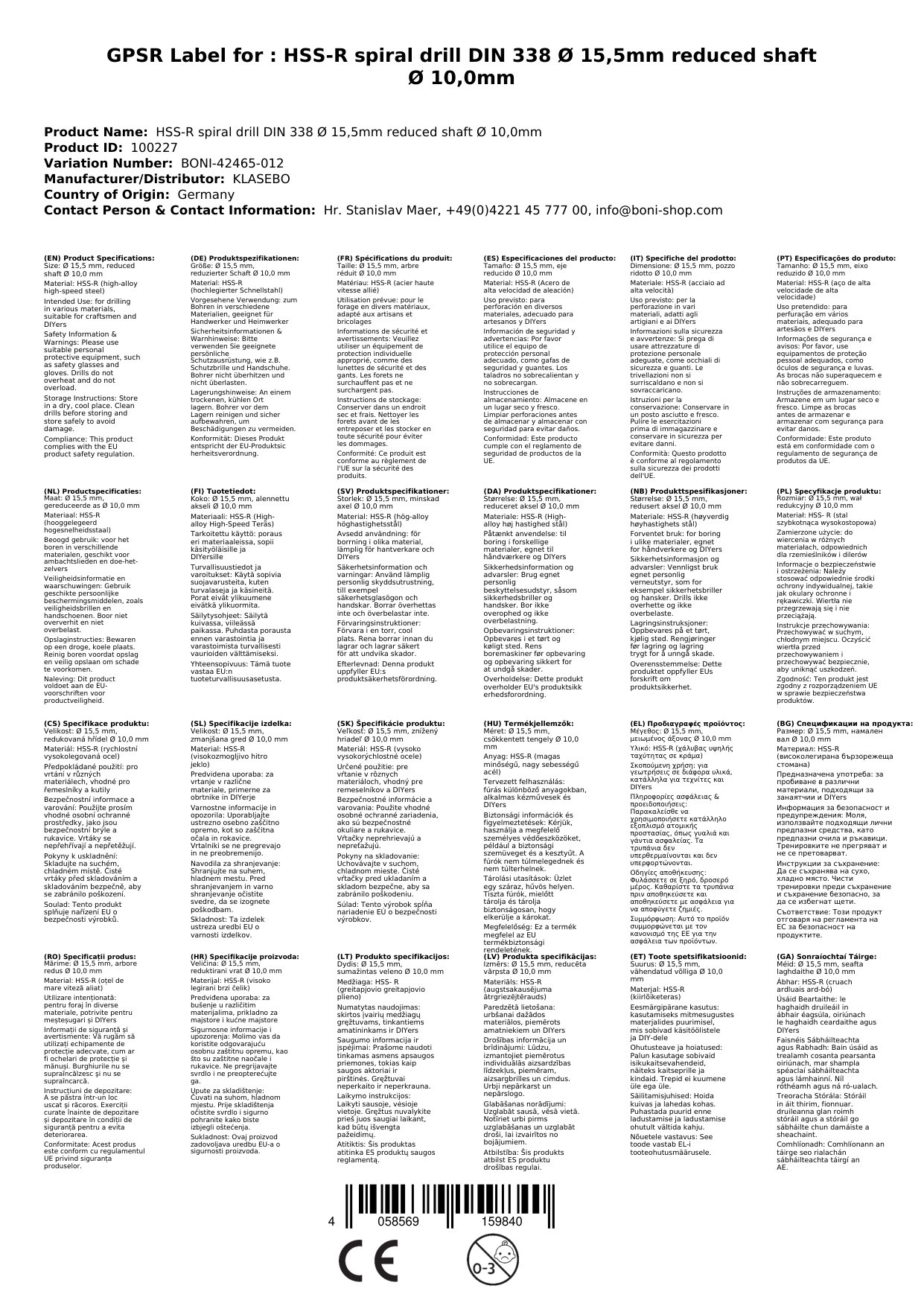 Tugann an druilire bíseach HSS-R seo, de réir chaighdeán DIN 338, deis duit poill bheachta a dhruileáil in cruach, iarann teilgthe, agus miotail neamhfheiriúla. Ligeann an seafta laghdaithe é a úsáid in chucks druile níos lú, agus cinntíonn an friotaíocht ard briste agus an uillinn pointe beacht torthaí is fearr. Foirfe d’oibritheoirí agus do dhéantóirí tí.