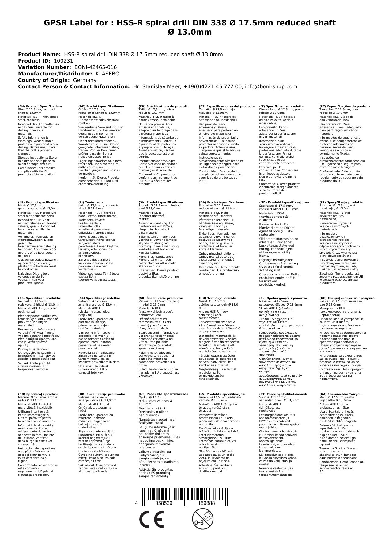 | Caighdeán | DIN 338 |