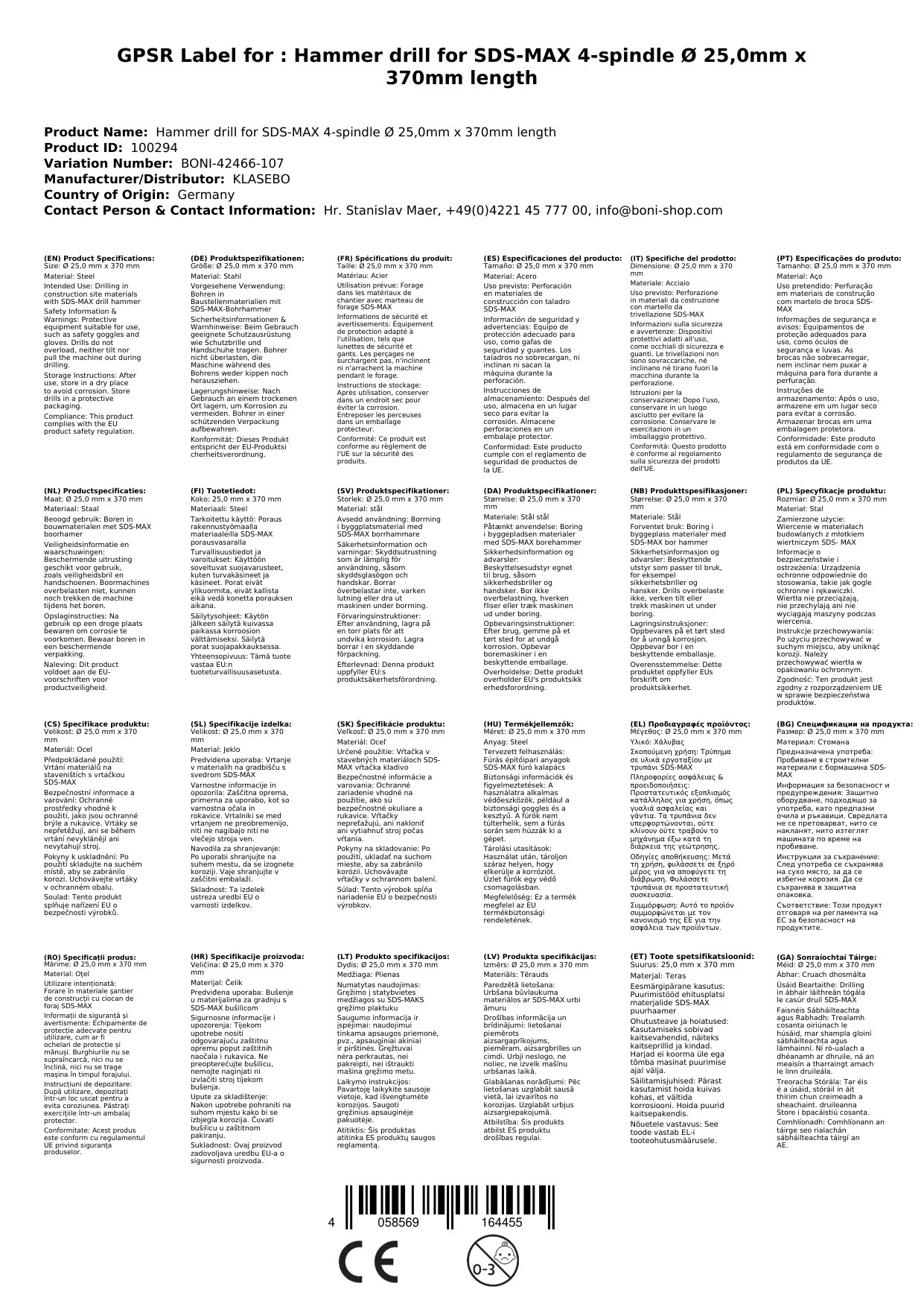 This high-quality SDS Max hammer drill enables you to drill precisely and efficiently into concrete, reinforced concrete, stone, and masonry. Thanks to its robust construction and 4-cutter technology, you can effortlessly achieve clean drill holes. It is ideal for tradespeople and DIY enthusiasts who value quality and durability.