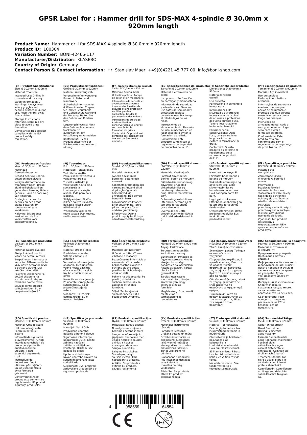 Tairgeann ár druilire SDS Max cosaint iontaofa agus beachtas ard do do thionscadail druileála. Le trastomhas 30 mm agus fad 920 mm, tá sé oiriúnach le haghaidh druileáil dhomhain in ábhair chrua. Cinntíonn an ceann 4-ghearrthóir dul chun cinn druileála tapa agus torthaí glana. Cén fáth a bhfuil sé seo tábhachtach duit: Faigheann tú druilire buan a chabhraíonn leat le tascanna éilitheacha.