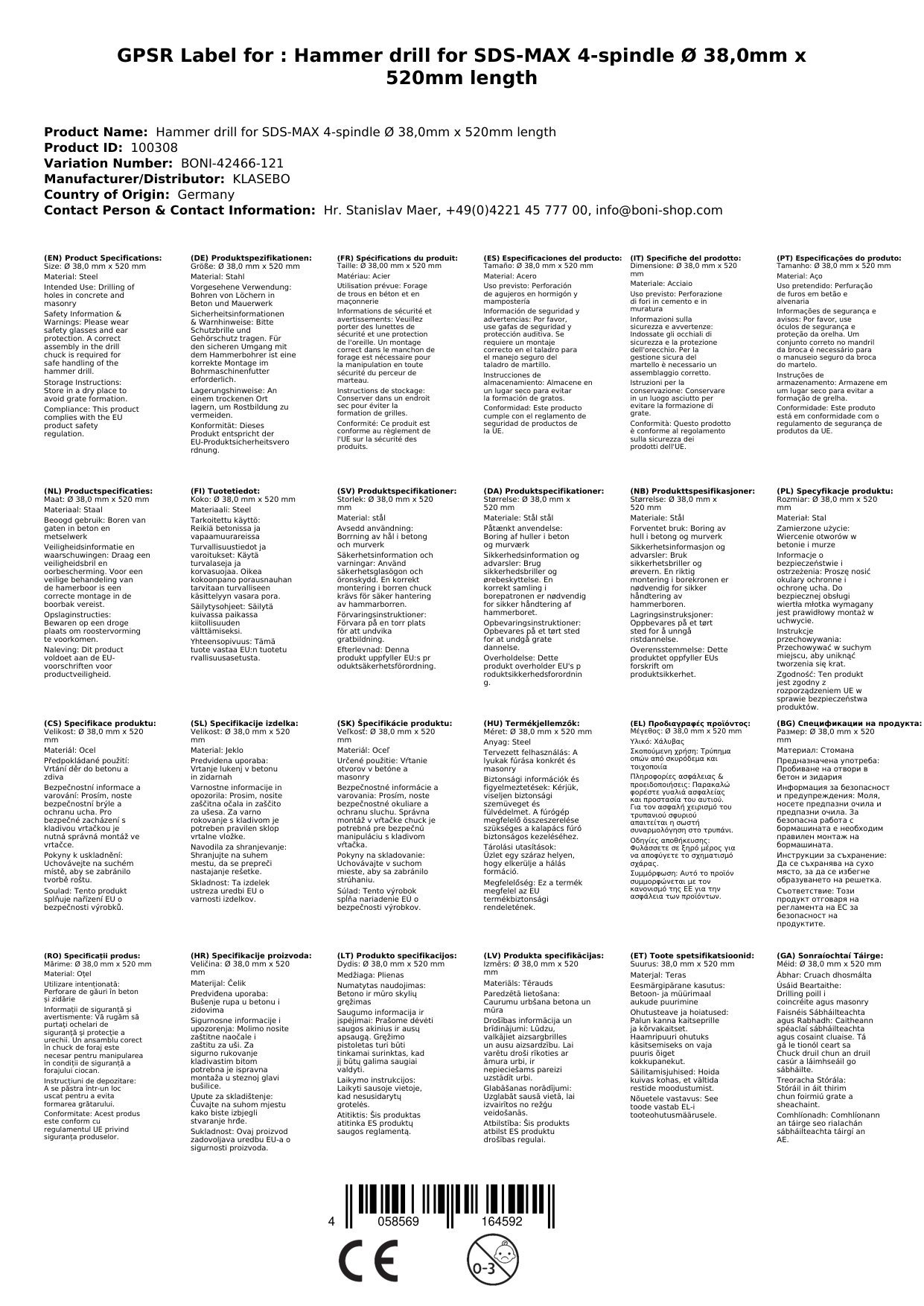 | 38 mm | 520 mm | SDS Max | Carbide | 4 |