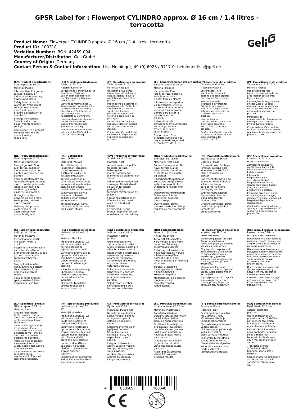 Cuireann ár bpotaí bláthanna CYLINDRO cosaint iontaofa ar fáil do do phlandaí. Le trastomhas de thart ar 16 cm agus toirt de 1.4 lítear, tá siad oiriúnach do phlandaí beaga agus luibheanna. Cinntíonn an fhriotaíocht UV agus sioc go mbainfidh tú taitneamh as iad ar feadh i bhfad. Cén fáth go bhfuil sé seo tábhachtach duitse: Faigheann tú pota bláthanna láidir agus buan a thacaíonn le do phlandaí go hoptamach.
